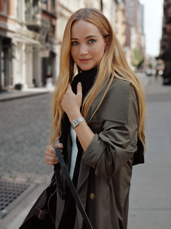 La collection se décline en un éventail impressionnant de coloris et de configurations. Six des nouvelles références affichent un boîtier orné de diamants. Outre la version classique, un autre modèle est pourvu d’un cadran Romain rectangulaire argenté qui se distingue par son décor flinqué. Frappés, ses motifs géométriques délicats s’inscrivent en relief avec un aspect guilloché, des chiffres romains peints et des aiguilles en acier bleui les complètent. La petite seconde se révèle dans un sous-cadran carré à 6 heures.