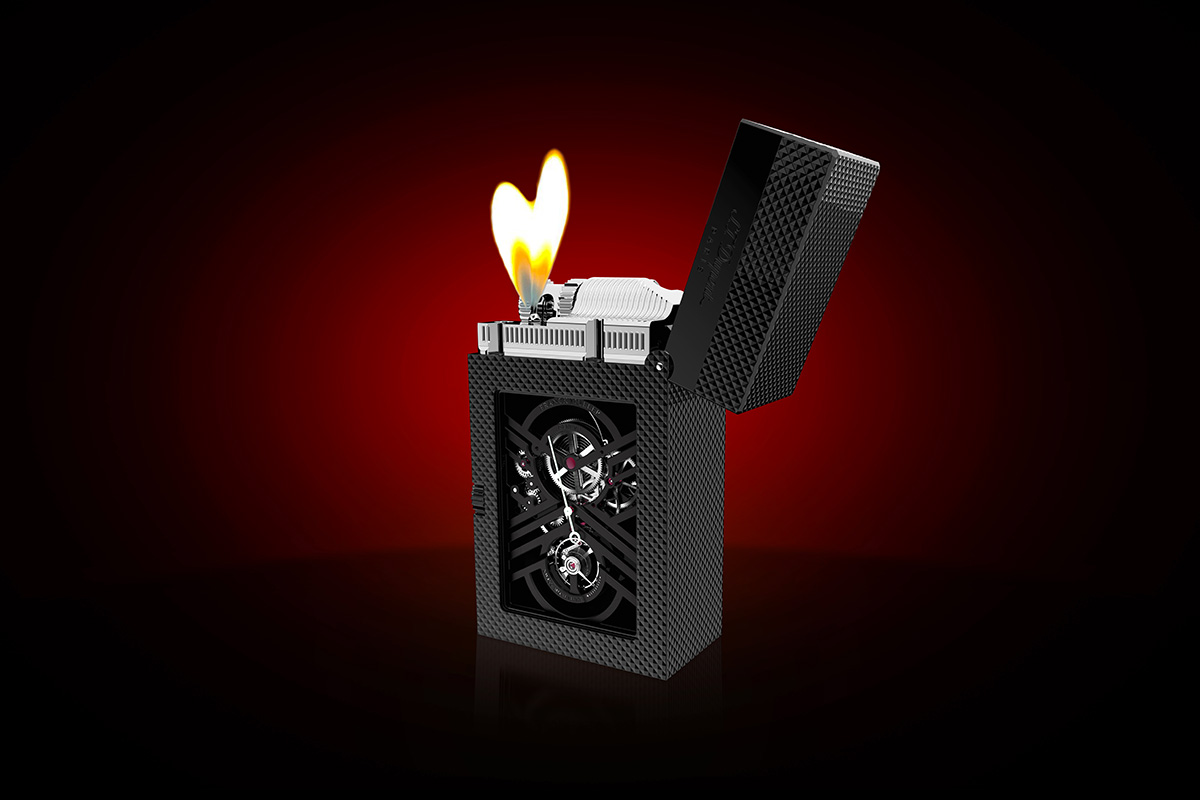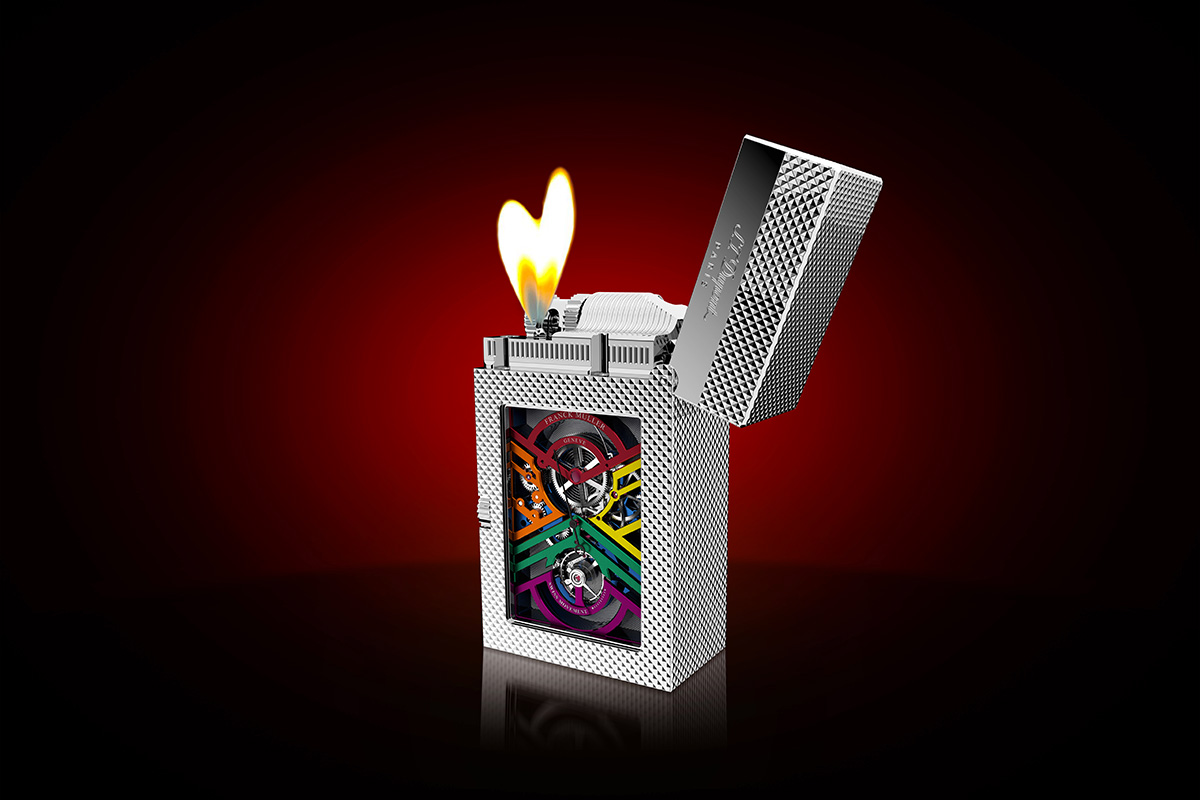 Franck Muller et S.T. Dupont viennent de dévoiler le Master Lighter, une combinaison remarquable entre Haute Horlogerie et orfèvrerie ! Ce briquet exceptionnel intègre une montre squelette avec réserve de marche.