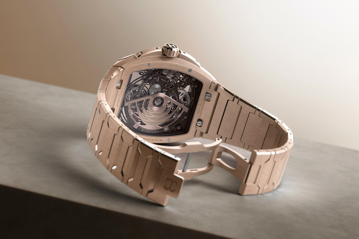 C’est à l’occasion du salon WatchTime New York que Bianchet vient de dévoiler l’UltraFino Gold Edition, une évolution de sa dernière collection de tourbillons. Ce garde-temps d’exception, façonné en or rose 18 carats, renferme le mouvement automatique extra-plat UT01.