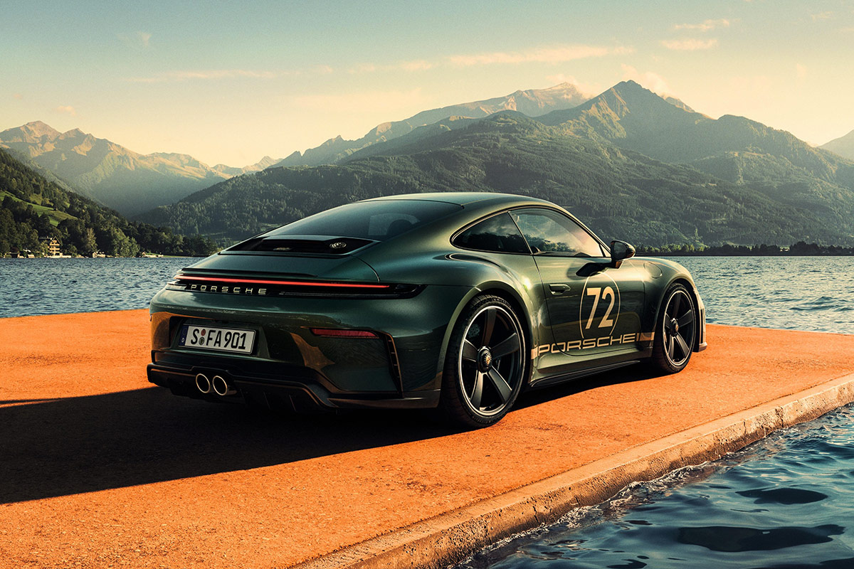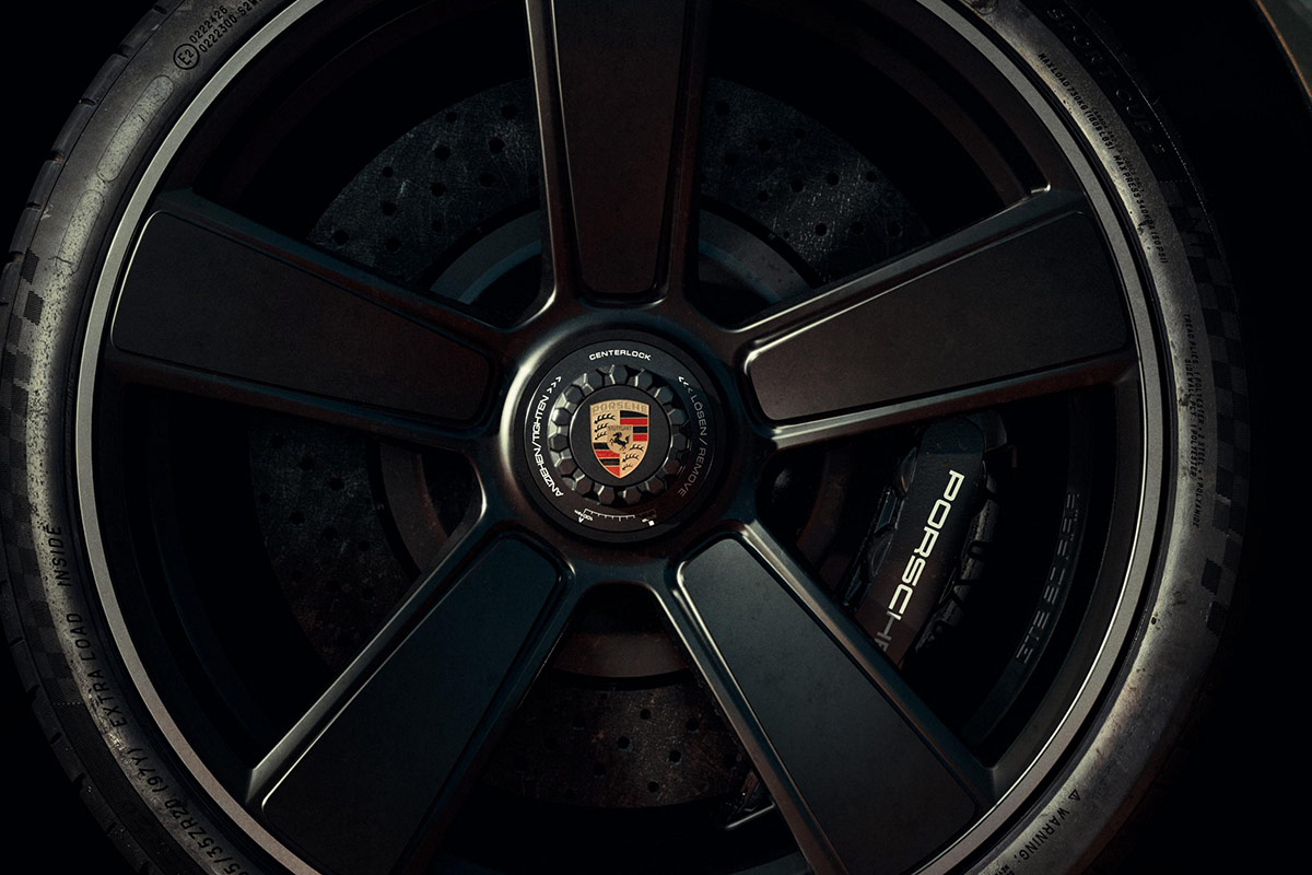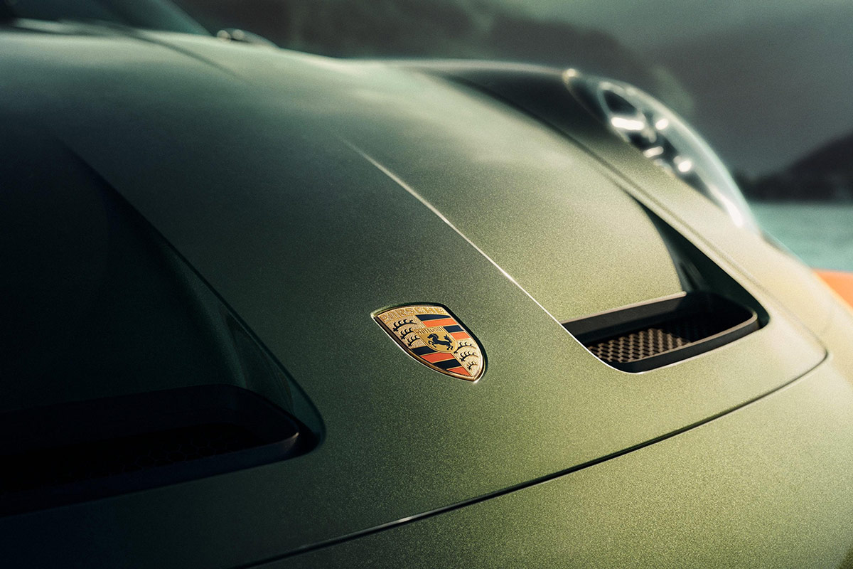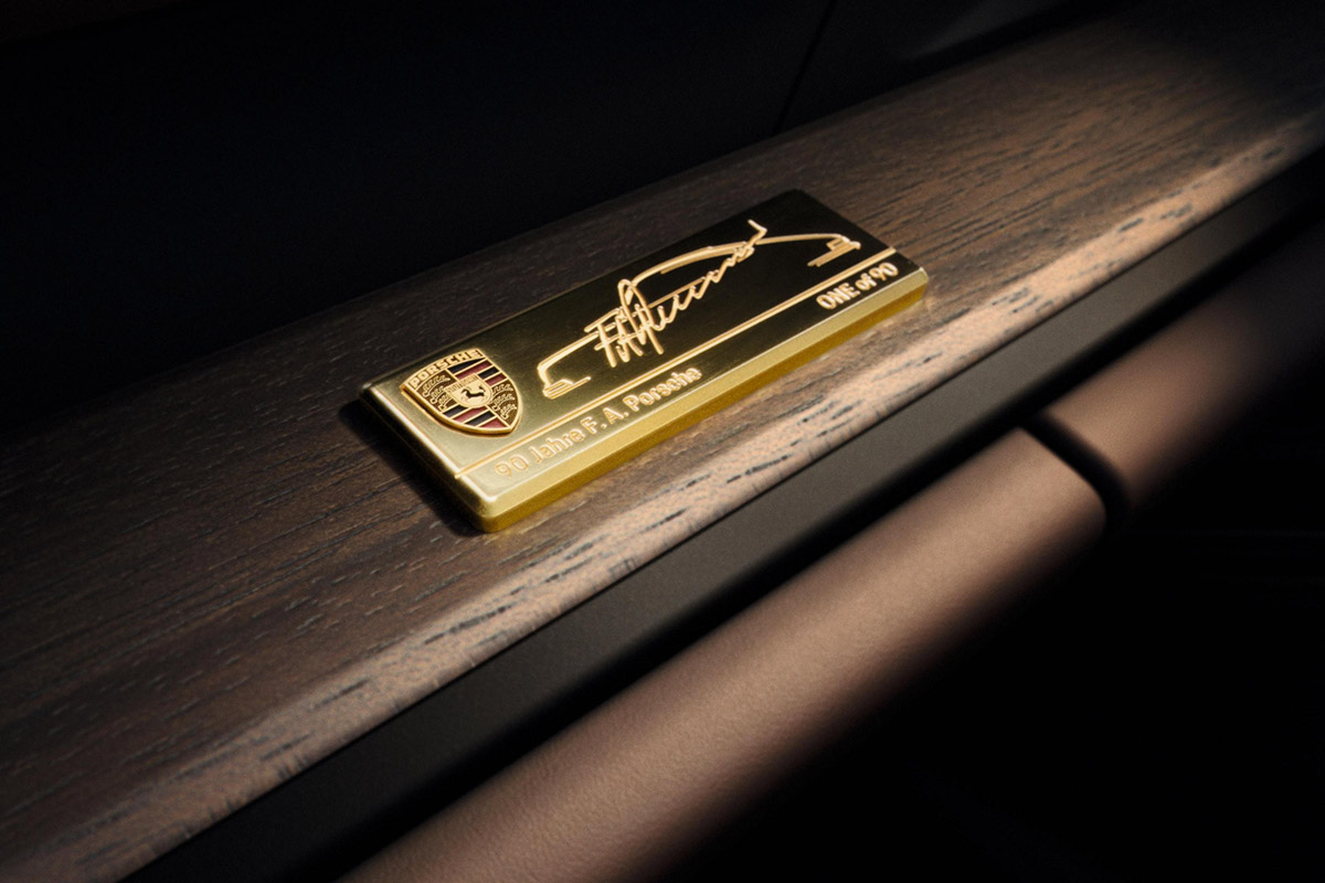 La peinture exclusive F. A. Greenmetallic est inspirée par l’emblématique Oakgreenmetallic de la 911 de F. A. Porsche. Les jantes Sport Classic sont peintes en noir satiné et disposent de détails particuliers comme l’écrou central et l’écusson historique de 1963 sur les centres de roue. Sur la grille arrière, on pourra admirer un badge galvanisé plaqué or avec le logo « 90 F. A. Porsche ».