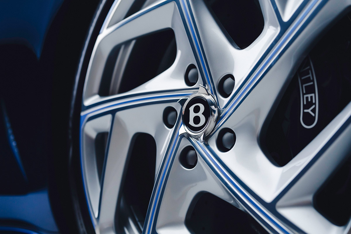 S’inspirant des premières Bentley, une finition en aluminium poli miroir habille la planche de bord. L’écran rotatif, doté de cadrans colorés sur mesure pour ses trois instruments, s’accorde avec le cadran bleu satiné de l’horloge. Cette finition n’est pas le seul élément métallique travaillé de l’habitacle ! Ce cabriolet Batur n°4 inaugure la première utilisation par Bentley d’impression 3D en platine, notamment sur le volant, soulignant ainsi l’exclusivité de cette voiture.