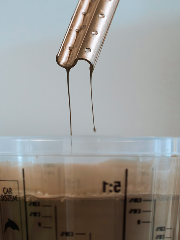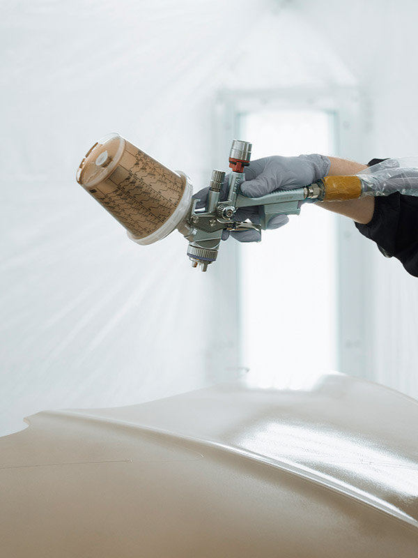 Pour aboutir à la palette de couleurs finale d’un projet aussi complexe, il a fallu mener des recherches approfondies. Ajustement après ajustement, réflexion après réflexion, ce processus minutieux a finalement conduit à la création de deux teintes entièrement inédites et développées sur mesure : une teinte dorée aux reflets chauds habillant les surfaces supérieures, associée à un blanc chaud raffiné enveloppant la partie inférieure de la carrosserie.