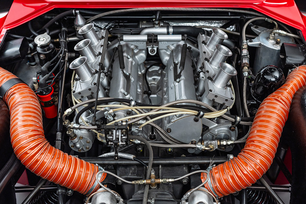 Ceci étant, bien qu’une production de 50 exemplaires ait été prévue pour répondre aux exigences de l’homologation, seuls 18 exemplaires verront le jour, et seuls 13 Dino 206 S quitteront Maranello avec une carrosserie Spyder dessinée par Piero Drogo. Le châssis 032 présenté ici est l’un des deux ayant été équipés du moteur V6 Tipo 233 S 2 litres le plus puissant, à injection et développant 270 chevaux.