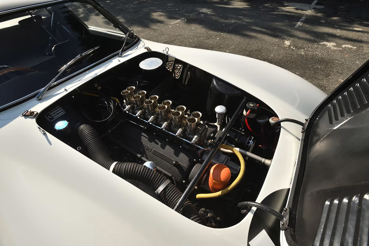 Forte d’un pedigree impressionnant, ayant été pilotée par des légendes telles que Graham Hill, Mike Parkes et Jack Sears, la singularité de la Bianco Speciale réside dans une qualité qui lui a été conférée dès sa naissance : sa couleur unique et son homonyme. Cette voiture originale fut achetée neuve par John Coombs, propriétaire de l’écurie britannique, et envoyée chez Scaglietti pour une carrosserie conçue par Bizzarrini après l’achèvement de la construction initiale le 7 mai 1962.