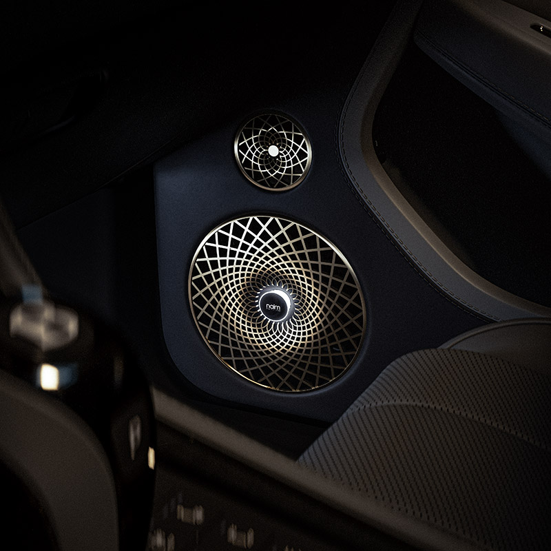 Les grilles d’enceintes sur mesure du système Naim for Mulliner ont été repensées pour offrir une transparence acoustique accrue de 26 %. Les nouvelles enceintes sont dérivées des enceintes Grand Utopia de Focal et intègrent, pour les médiums et les aigus, des cônes « M » brevetés. Ces derniers son capables de restituer un niveau de détail époustouflant !