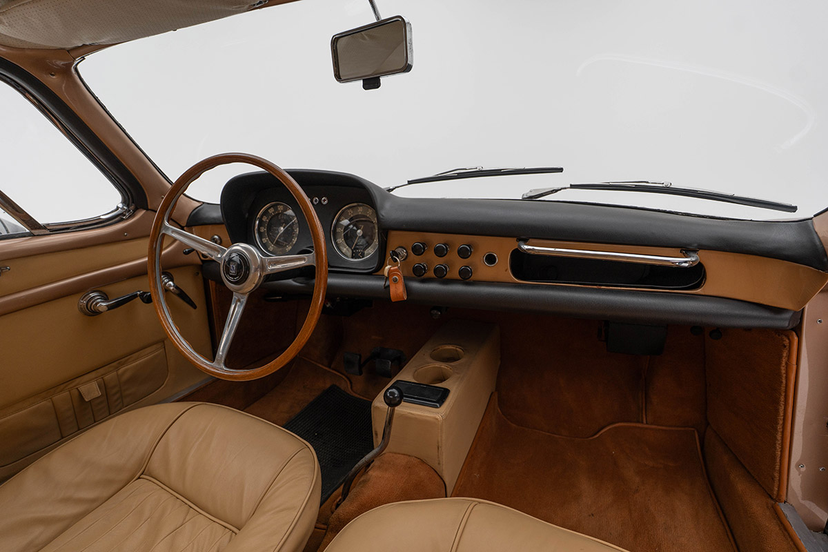 À notre sa grande calandre fuselée, fermée par un proéminent cadre chromé qui joue le rôle de pare-chocs. La lunette panoramique arrière qui se raccorde avec le coffre, accessible uniquement à partir de l’habitacle. Seuls éléments saillants dans la partie terminale, le double pot d’échappement et un pare-chocs mince, alors que les projecteurs arrière sont noyés dans la carrosserie.