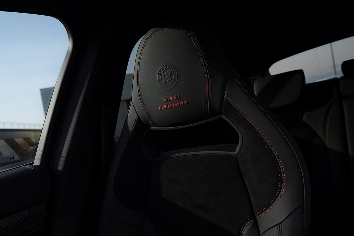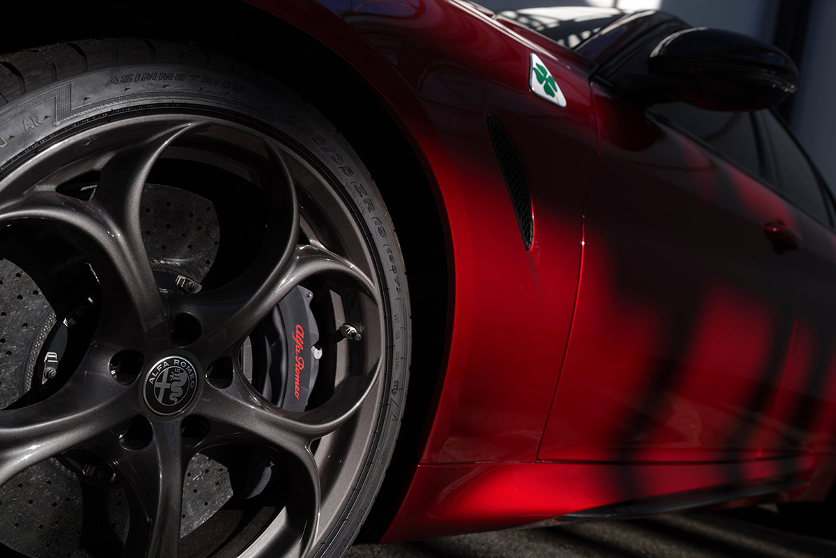 Sous le capot gronde le V6 de 2.9 litres développant 520 chevaux, digne représentant de la tradition sportive d’Alfa Romeo, associé à la propulsion arrière et à un différentiel à glissement limité mécanique. À travers les jantes 19 pouces, on peut admirer les étriers de frein gris anodisé. Les teintes de carrosserie proposées sont Rouge Etna, Vert Montreal, Bleu Misano, Gris Vesuvio, Noir Vulcano et Rouge Alfa.