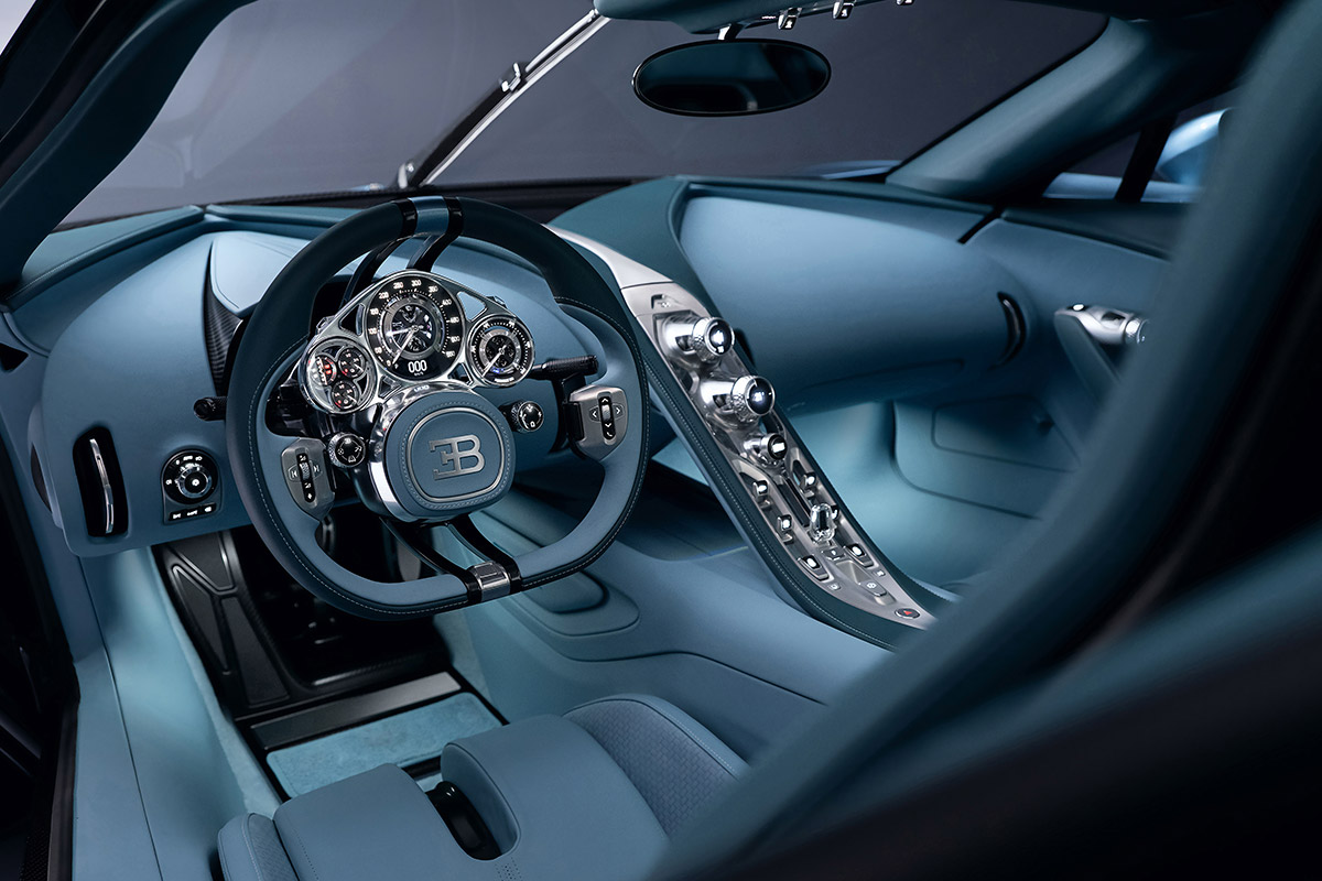 Dans cet habitacle, la célèbre ligne centrale et la ligne Bugatti en « C » se fondent en une nouvelle forme, créant une séparation visible entre le conducteur et le passager. Une ligne en harmonie subtile avec le profil dynamique de l’extérieur. En plus d’une division des couleurs, la gamme des matériaux utilisés a également été élargie.