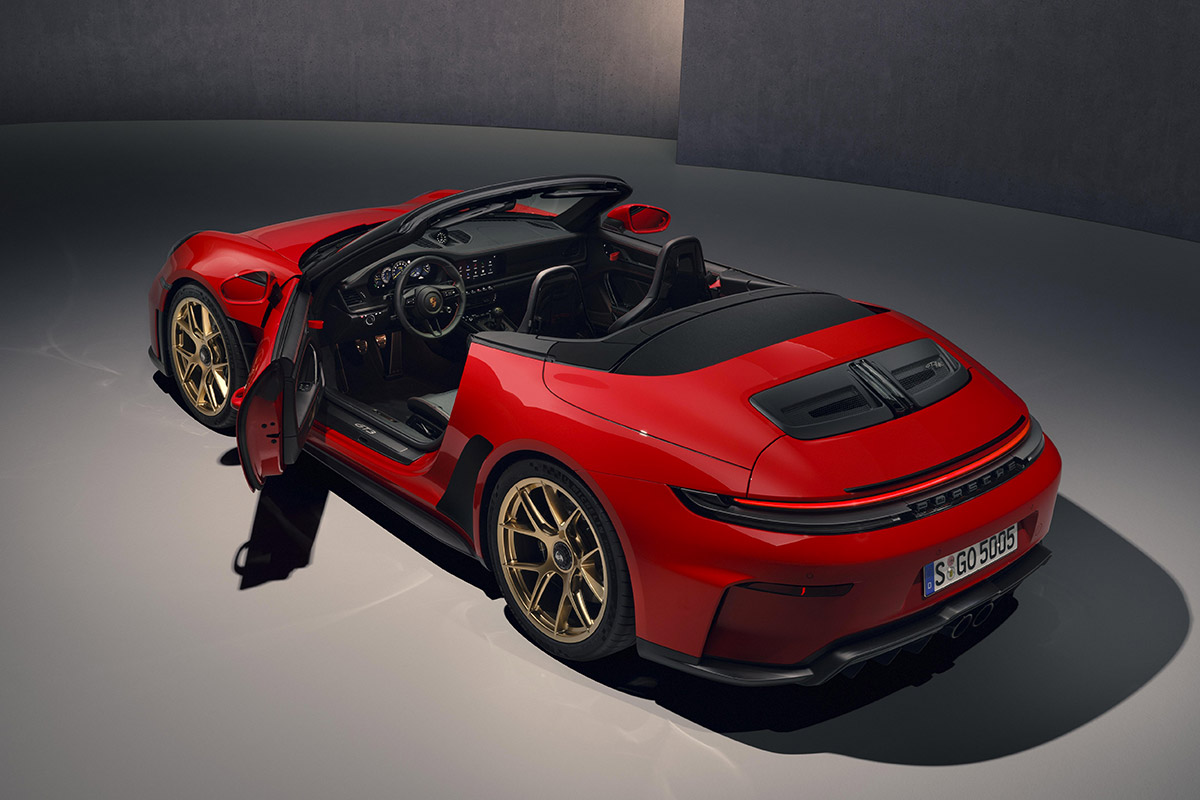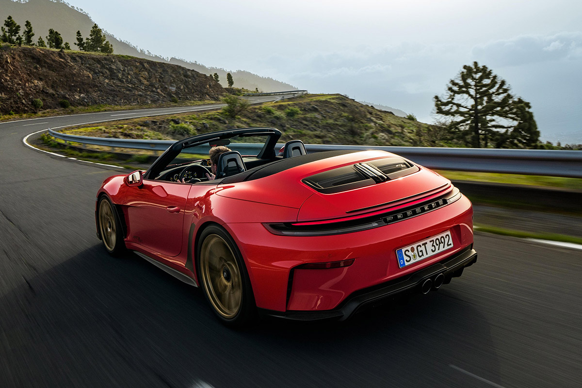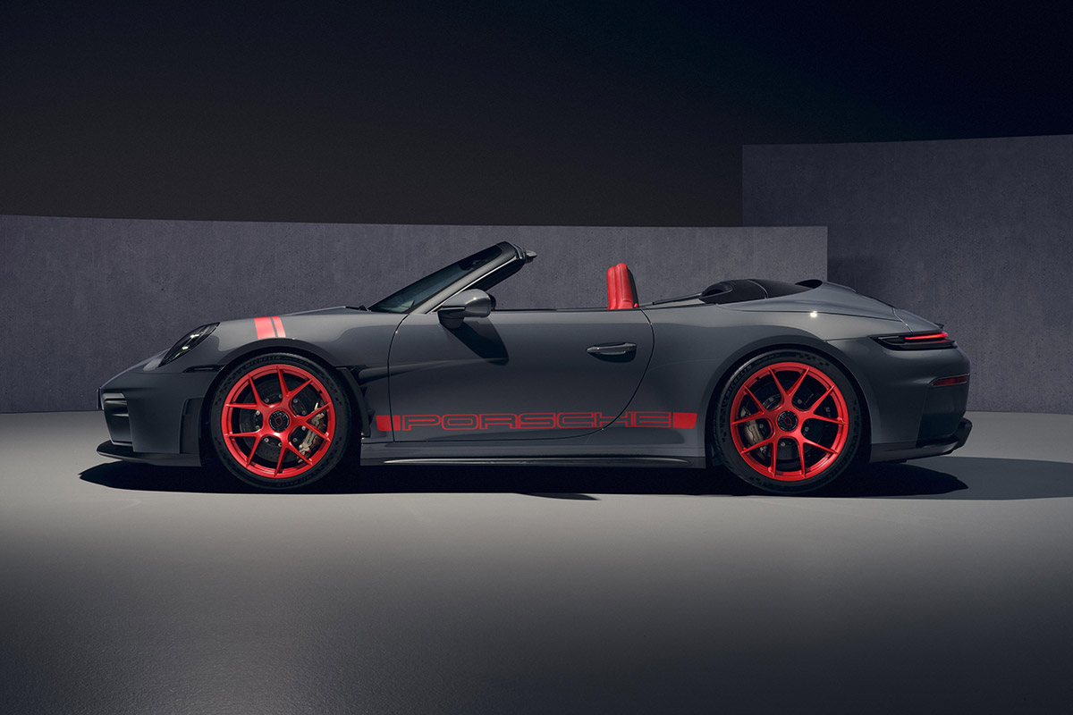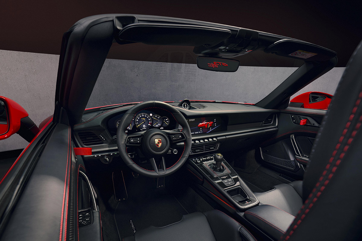 On notera pour la première fois sur une 911 décapotable, l’aileron arrière rétractable est orné d’une lèvre de spoiler, comme sur la 911 S/T et la 911 GT3 équipées du pack Touring. Quant à la lame de spoiler avant et au diffuseur arrière, ils sont identiques à ceux de l’actuelle 911 GT3.