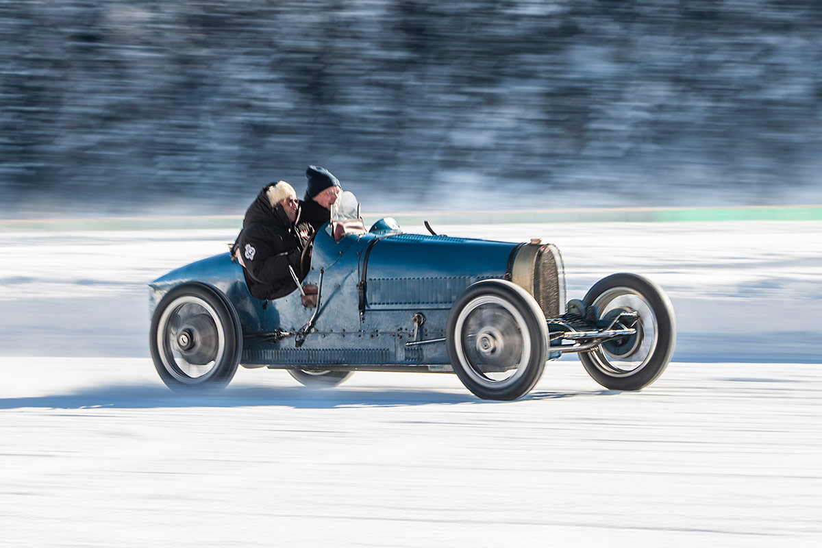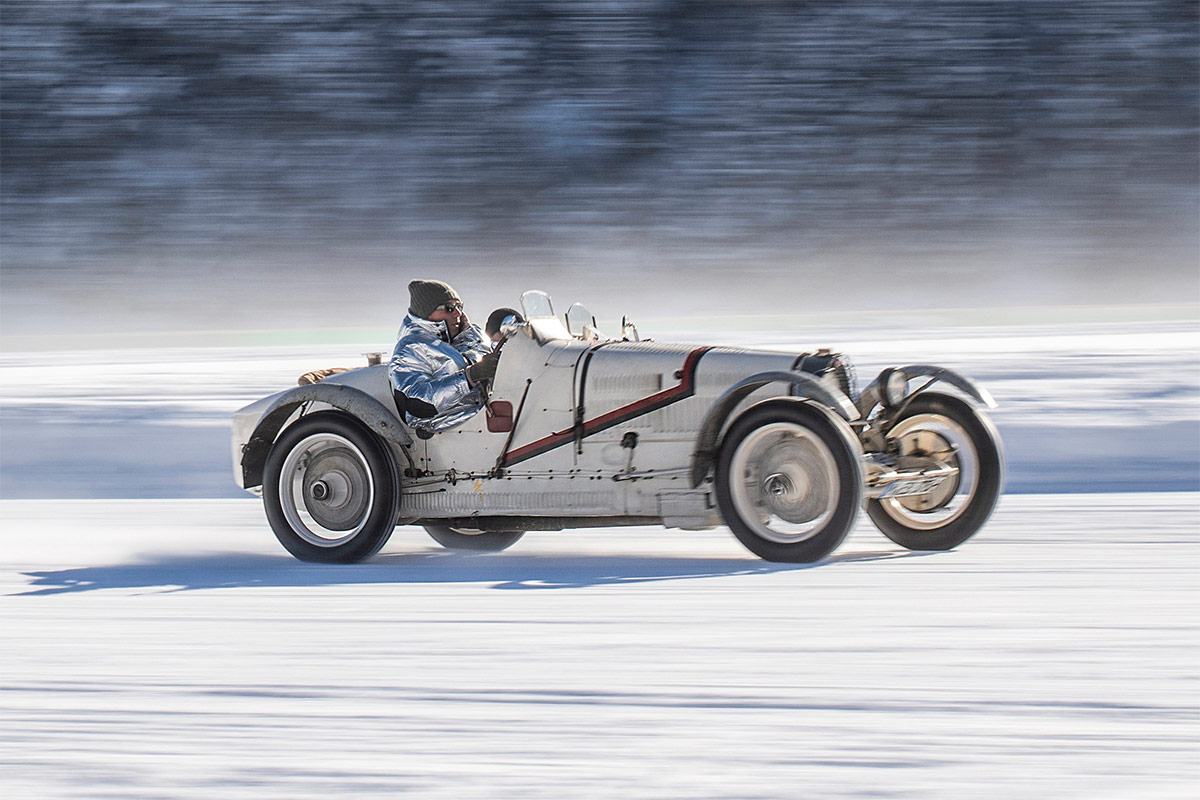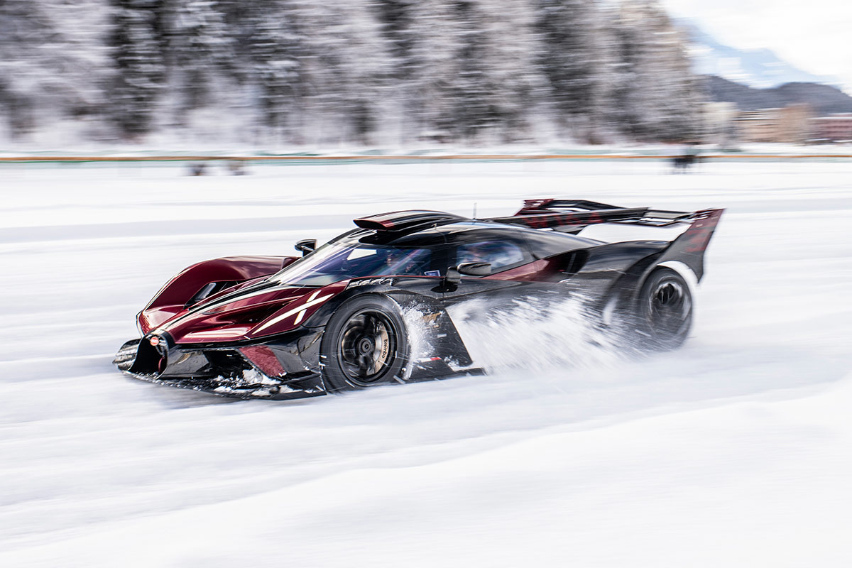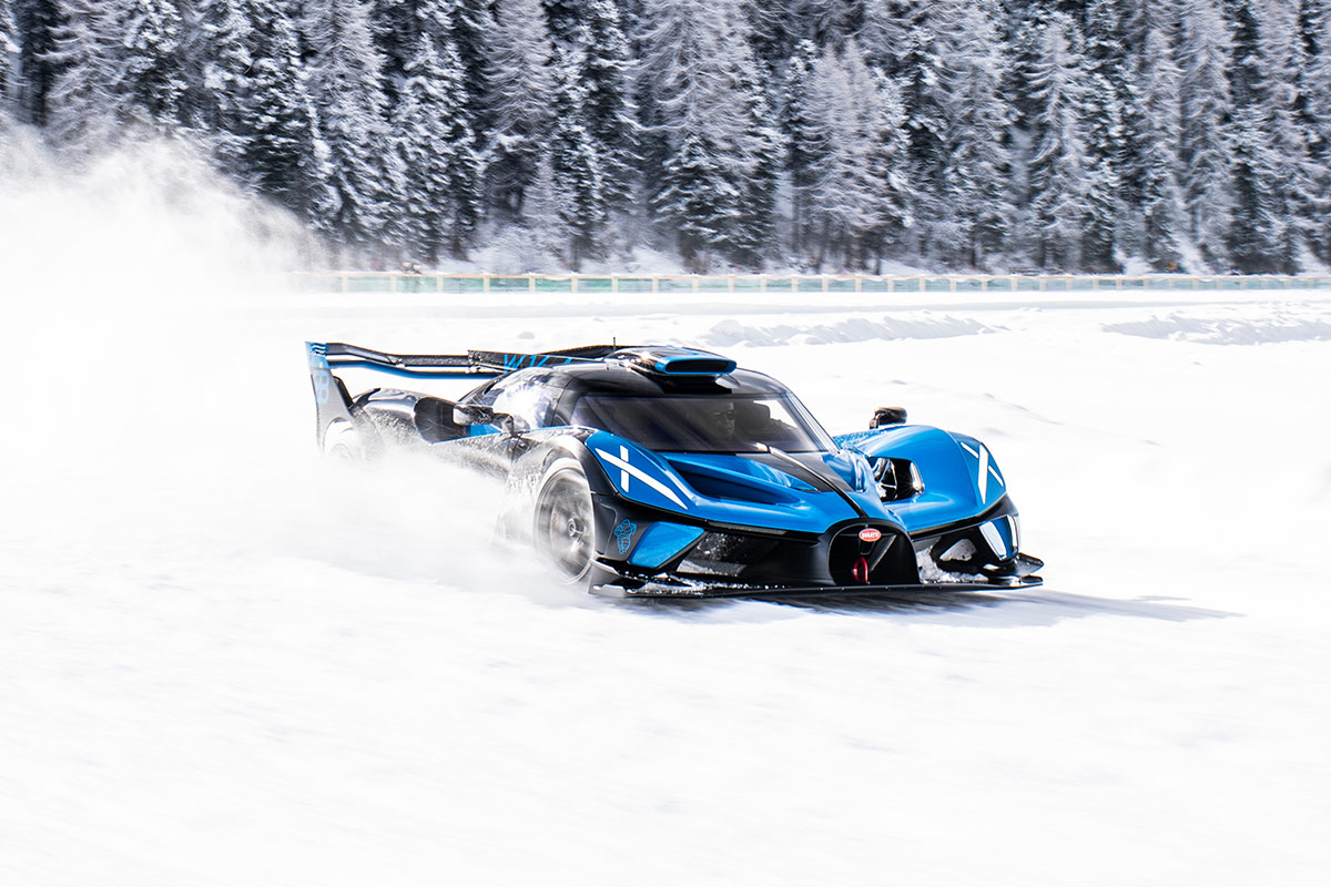 Trois Bugatti Bolide, accompagnés de leurs propriétaires, foulent la glace en repoussant les limites du possible. Il faut dire qu’avec l’extrême puissance du moteur W16, ce genre d’exercice n’est pas chose facile.