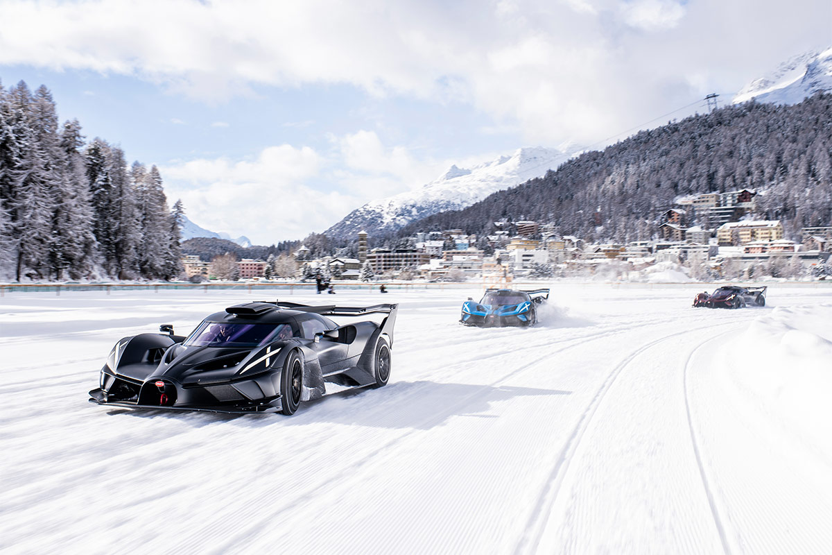 Bugatti a profité de The I.C.E. St. Moritz, événement hors du commun qui célèbre l’automobile, pour faire rouler ses hypercars sur la vaste étendue de glace blanche du lac de Saint-Moritz. Bugatti on ice !