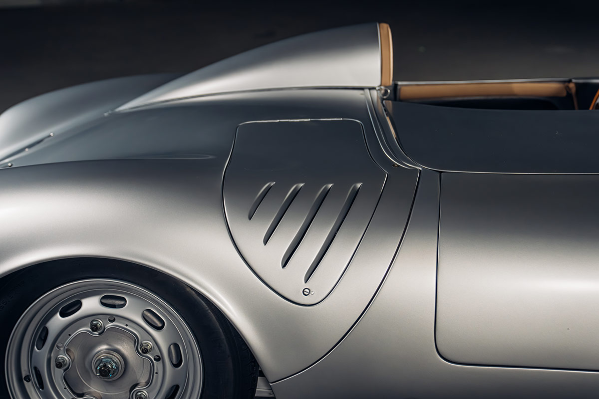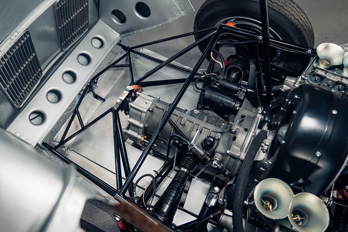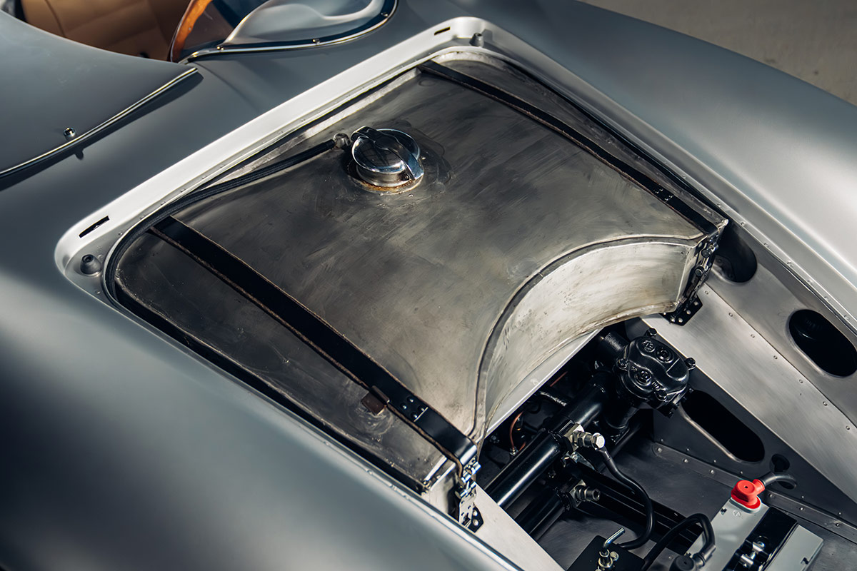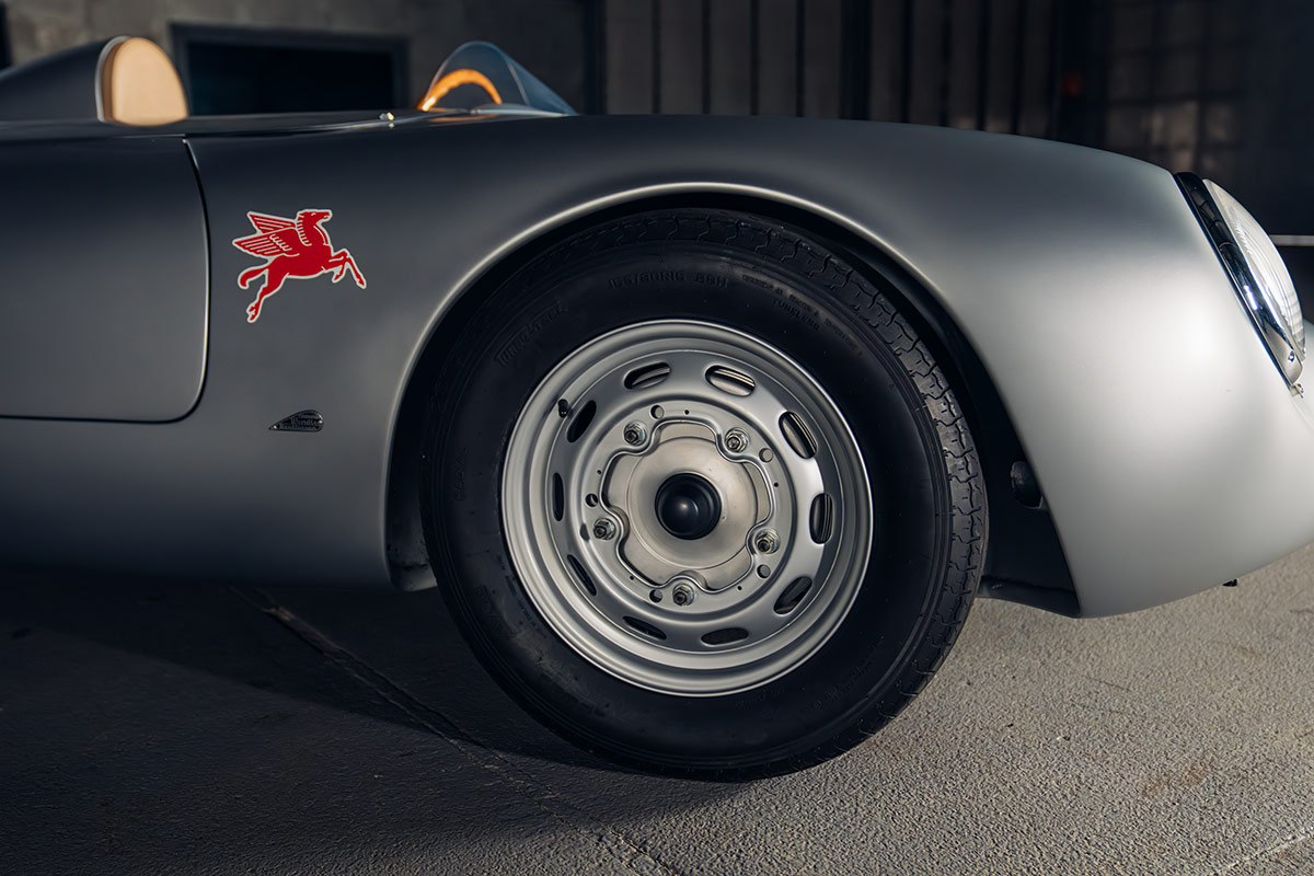 Stan Sugarman, un ami de Jack McAfee, accepta ensuite d’acheter plusieurs voitures à John Edgar, avant de commander le châssis numéro 550A-0116 présenté ici. Abandonnant le châssis échelle au profit d’une structure tubulaire plus légère et plus rigide, seuls 40 exemplaires de cette version améliorée du Spyder furent produits. D’après les notes d’Herbert Linge, qui a conservé avec soin des registres manuscrits de toutes les 550A construites, cet exemplaire fut achevé le 18 février 1957 avant d’être livré à la concession McAfee de Burbank, en Californie, le 4 mars.