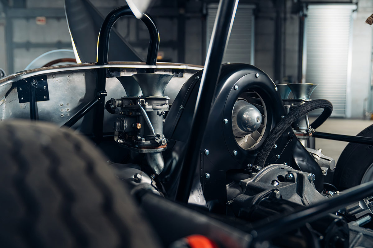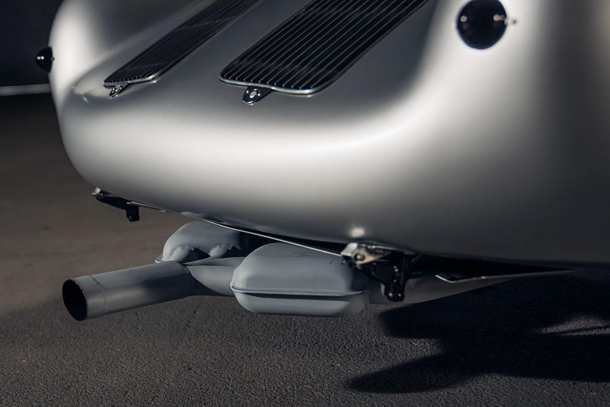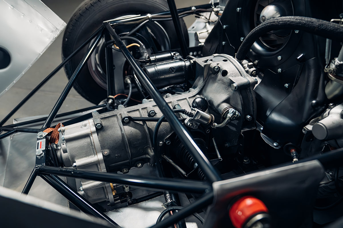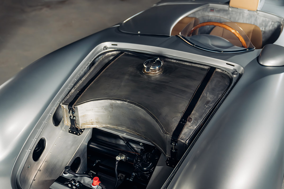 Stan Sugarman, un ami de Jack McAfee, accepta ensuite d’acheter plusieurs voitures à John Edgar, avant de commander le châssis numéro 550A-0116 présenté ici. Abandonnant le châssis échelle au profit d’une structure tubulaire plus légère et plus rigide, seuls 40 exemplaires de cette version améliorée du Spyder furent produits. D’après les notes d’Herbert Linge, qui a conservé avec soin des registres manuscrits de toutes les 550A construites, cet exemplaire fut achevé le 18 février 1957 avant d’être livré à la concession McAfee de Burbank, en Californie, le 4 mars.