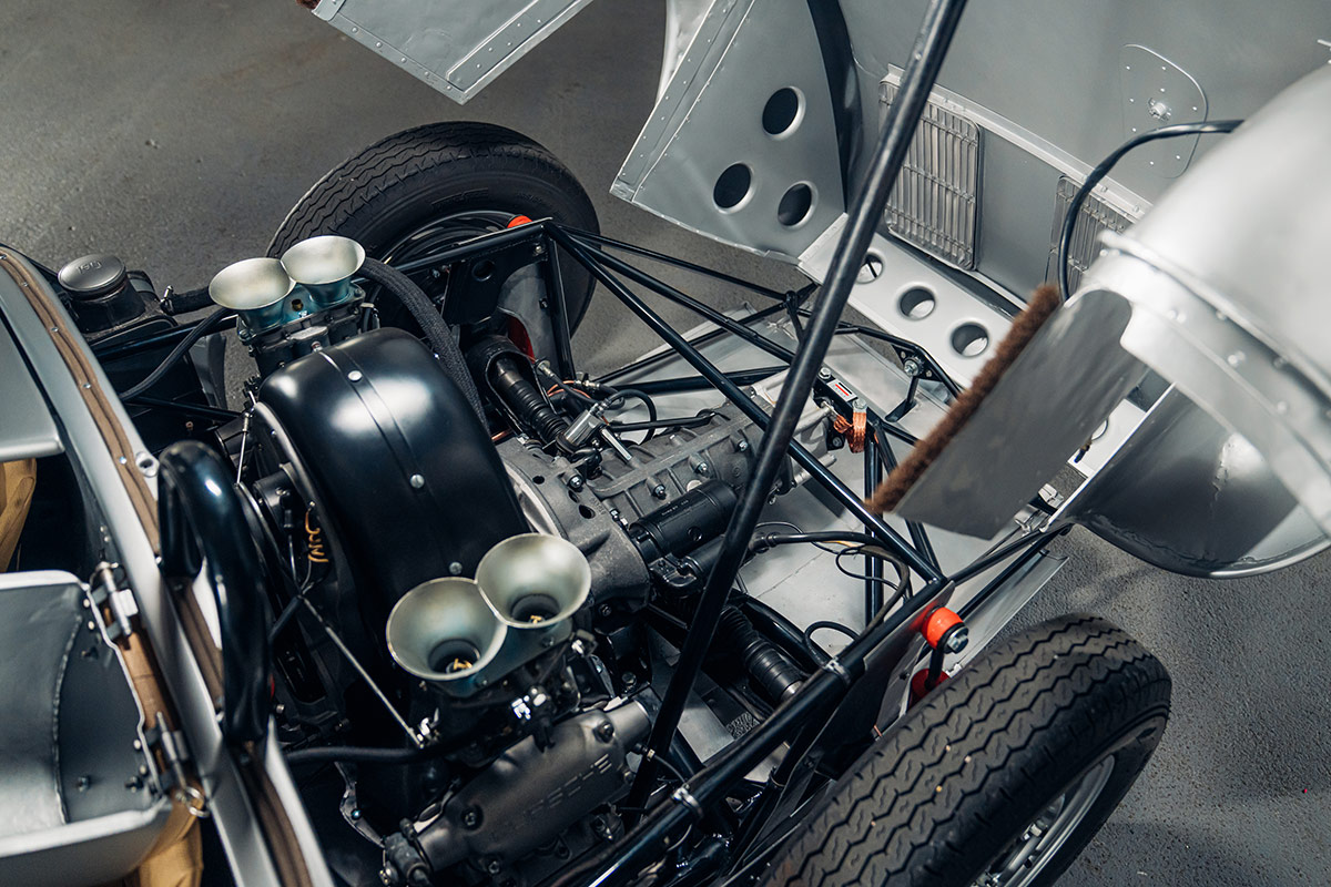 En 1993, la 550A Spyder est acquise par le collectionneur japonais Hui Takahara, puis expédiée en Allemagne pour être entièrement restaurée par l’écurie Porsche championne du monde et spécialiste de longue date de la restauration, Freisinger Motorsport. La voiture retrouve sa configuration d’époque, tout en bénéficiant du design aérodynamique du nez de 1959. Parallèlement, Karl Hloch conçoit un nouveau moteur à quatre arbres à cames et remplace le carter moteur d’origine. Ce dernier (P 90109), dont le numéro correspond à celui de la voiture, est conservé et inclus dans la vente.