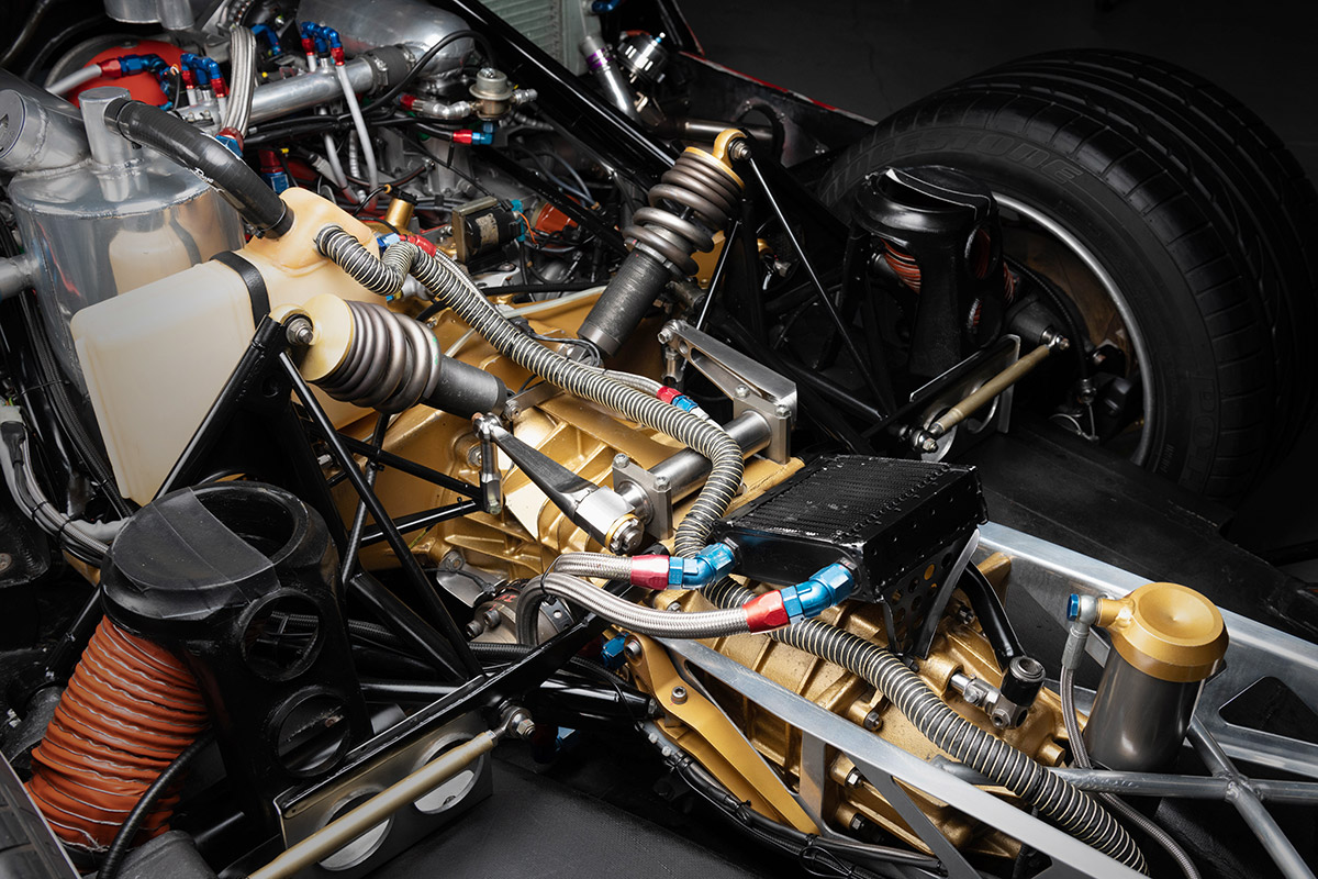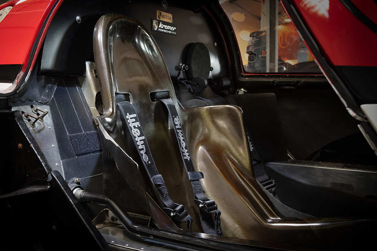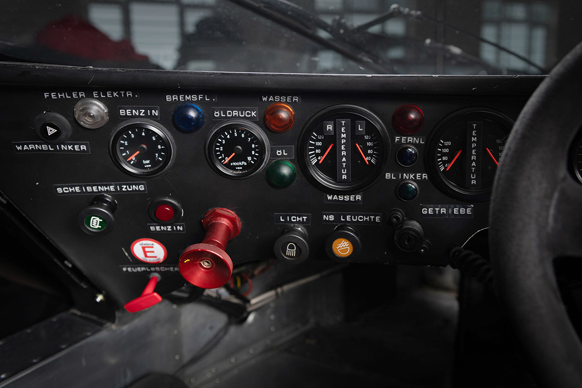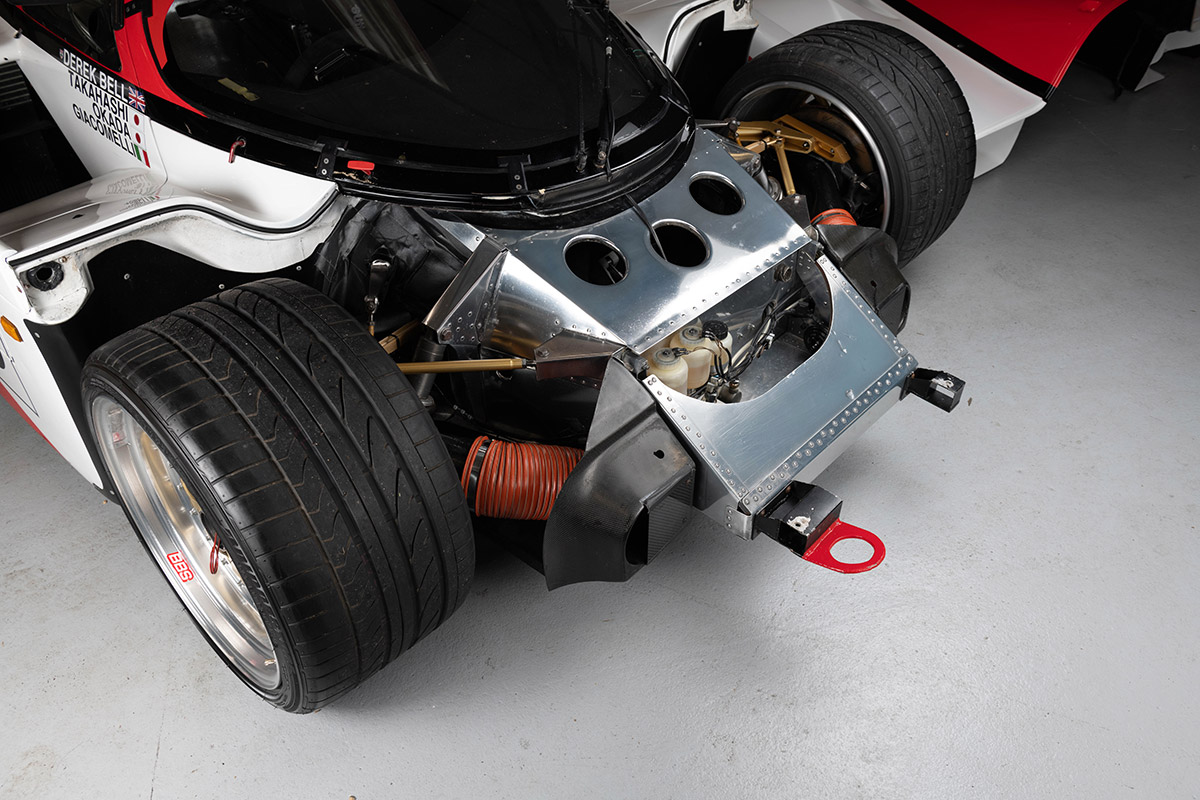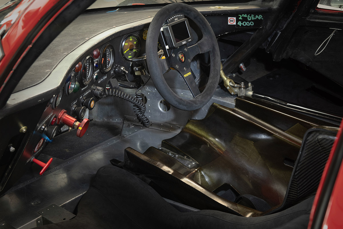 Achetée fin 2021 par le vendeur, cette 962 a fait l’objet d’une conversion intelligente et non intrusive à un usage routier, si bien qu’elle a pu obtenir en 2022 une immatriculation pour la route au Royaume Uni. Les travaux ayant permis de la rendre non seulement immatriculable mais également facile à utiliser dans la circulation ont été réalisés par BBM Sport, à Daventry, qui s’est forgé une excellente réputation dans le domaine de la restauration et de la préparation de prototypes.