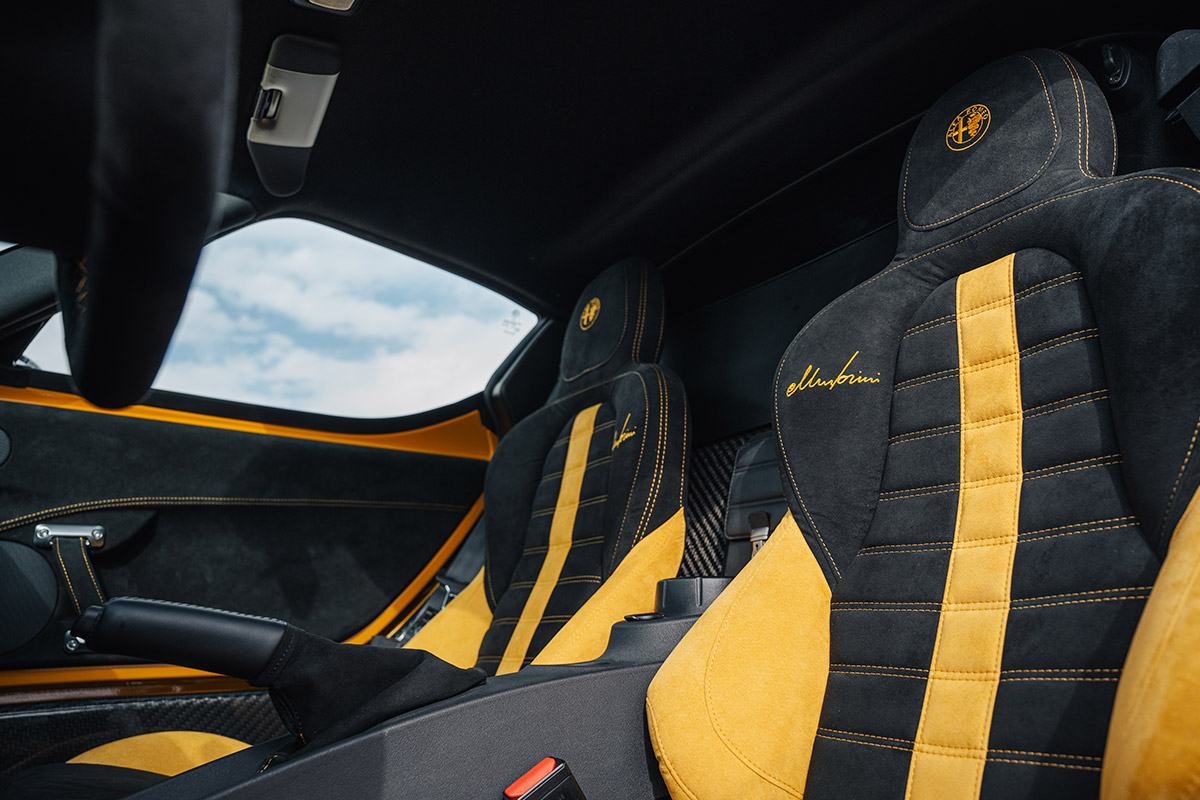 Sur ce premier modèle, l’attention porté aux détails est assez remarquable, à commencer par la livrée que l’on doit au travail commun entre le Centro Stile et le designer Alessandro Maccolini, inspirée des Giullia GT des années 1960 et 1970. La finition ton sur ton de la carrosserie et des jantes évoque cette époque glorieuse, réinterprétée avec une élégance contemporaine, tandis que l’autographe de Larini, appliqué sur le capot, sur la plaque du tableau de bord et brodé sur les sièges, souligne le caractère unique de cet exemplaire.