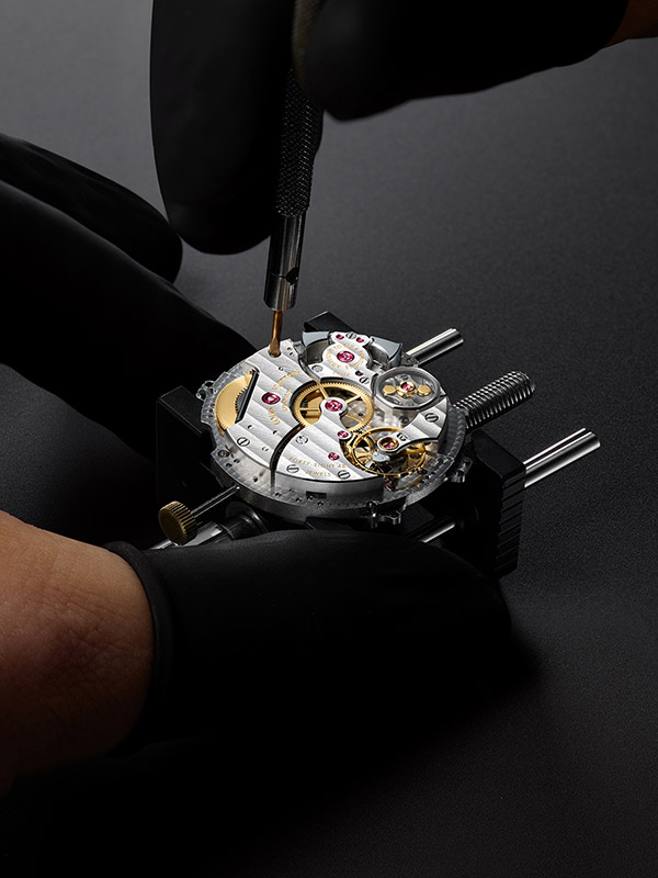 Tous les éléments acoustiques du calibre ont été accordés à la perfection. Les marteaux et les gongs noirs polis sont façonnés, découpés et ajustés à la main pour garantir une vibration et une amplitude optimales, puis accordés minutieusement à l’oreille afin d’obtenir un carillon cristallin d’une clarté et d’une puissance remarquables.
