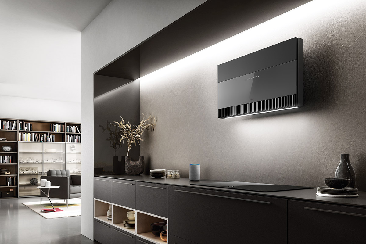 Les hottes Elica avec Wi-Fi intégré permettent une gestion à distance via un assistant vocal et l’application Elica. Par un simple clic sur votre smartphone ou par commande vocale, vous pouvez allumer et éteindre la hotte, régler sa puissance d’aspiration, ainsi que l’intensité et la couleur de son éclairage.