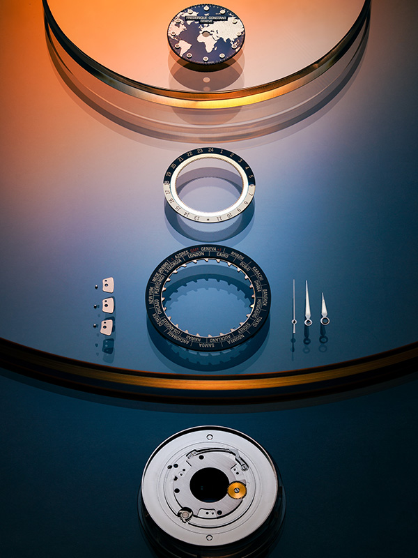 Derrière sa lisibilité et sa simplicité d’usage, la Classic Worldtimer Manufacture cache une complication horlogère de belle facture. Elle offre la vue simultanée, en temps réel, de l’heure qu’il est dans les 24 fuseaux horaires de référence. En optant pour un disque en deux couleurs, le voyageur distingue intuitivement les fuseaux de jour et de nuit.