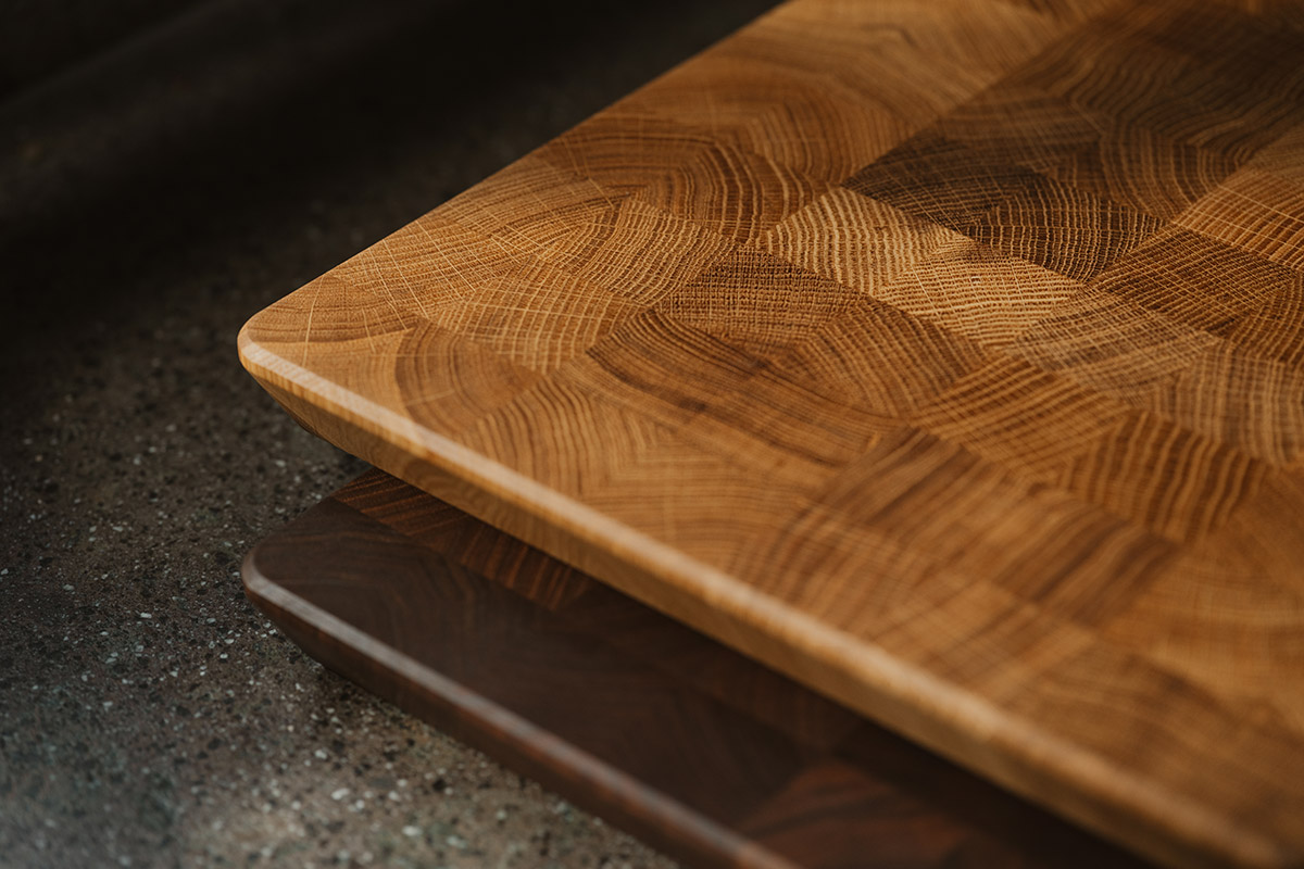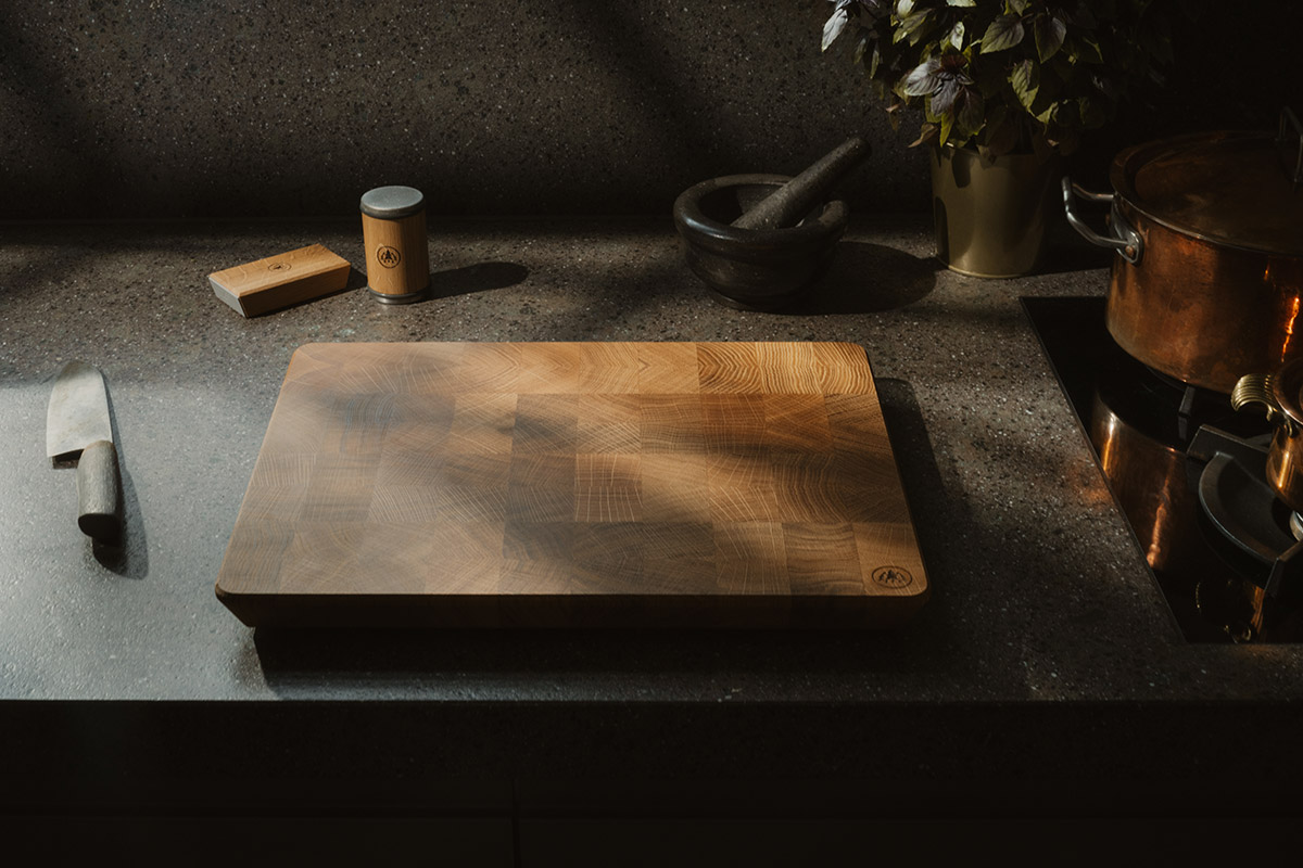 Ces morceaux de bois trouvent désormais une nouvelle vie sous la forme de la Horl Board, une planche de cuisine haut de gamme. Fabriquée avec la technique exigeante du bois de bout et en grande partie à la main, elle résulte de l’assemblage minutieux de blocs de bois sélectionnés avec soin et exempts de défauts.