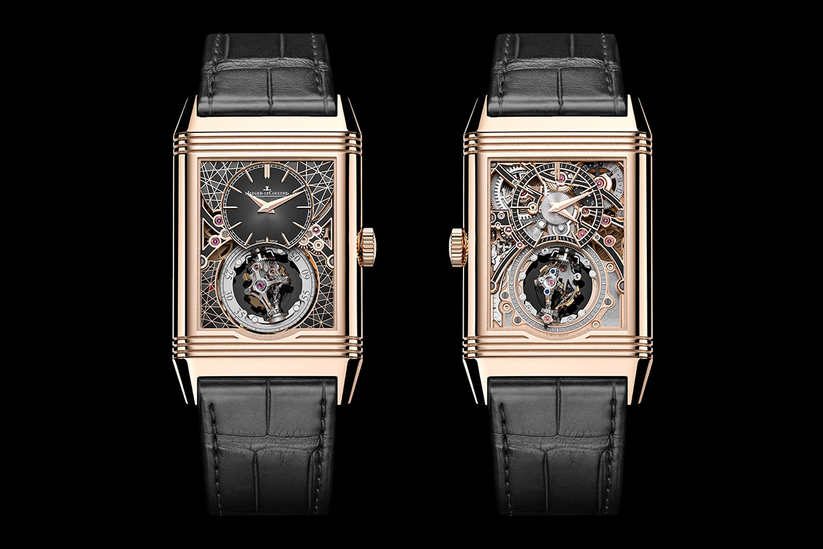 Même si elle a été créée en 1931, c’est dans les années 1990 que la Reverso se pare de grandes complications. C’est à cette époque qu’apparaît le mouvement Duoface qui affiche un fuseau horaire différent sur chaque cadran. Intégrant ce mécanisme, le Calibre 179 présente également la quatrième évolution du Gyrotourbillon, le tourbillon multi-axes de la Manufacture, développé spécifiquement pour cette collection.