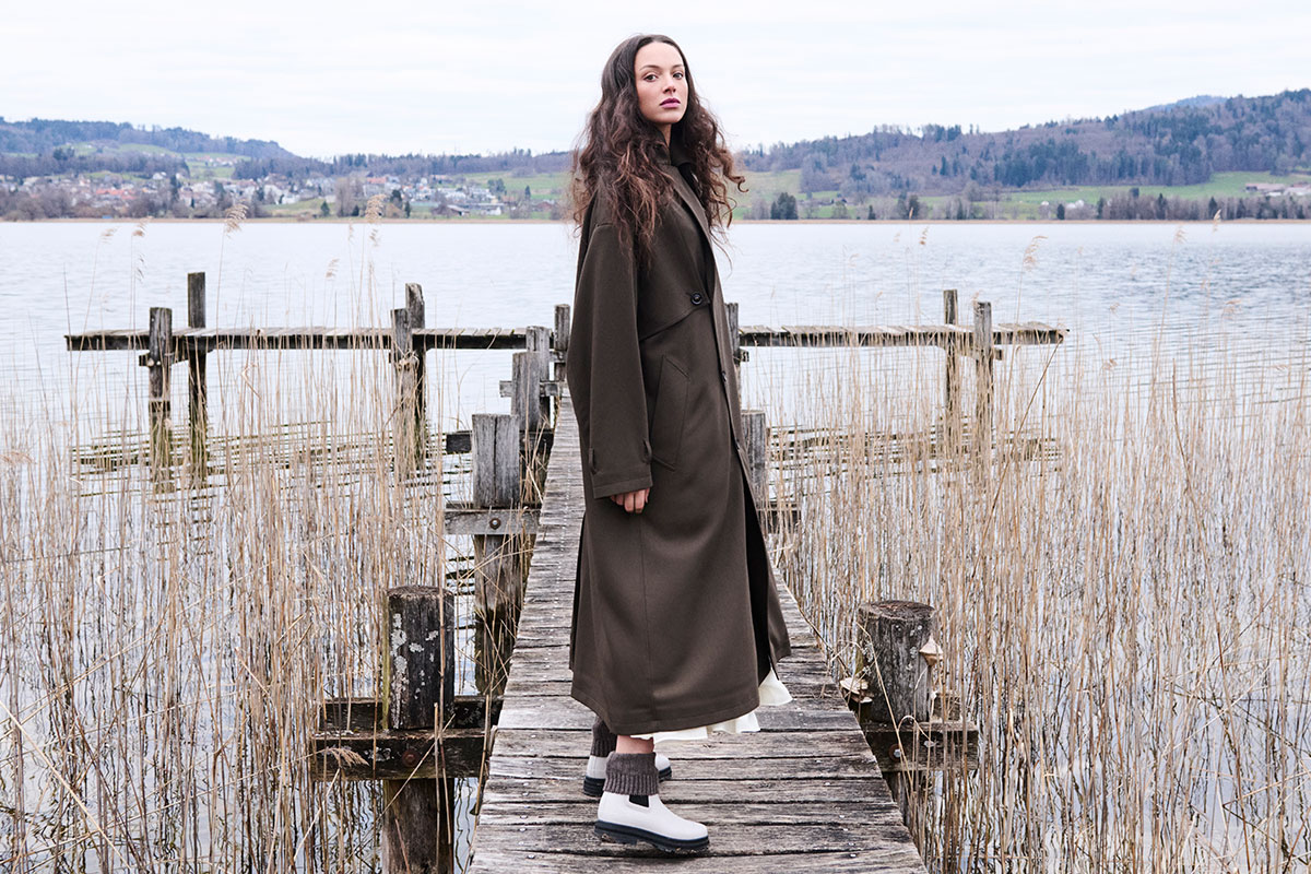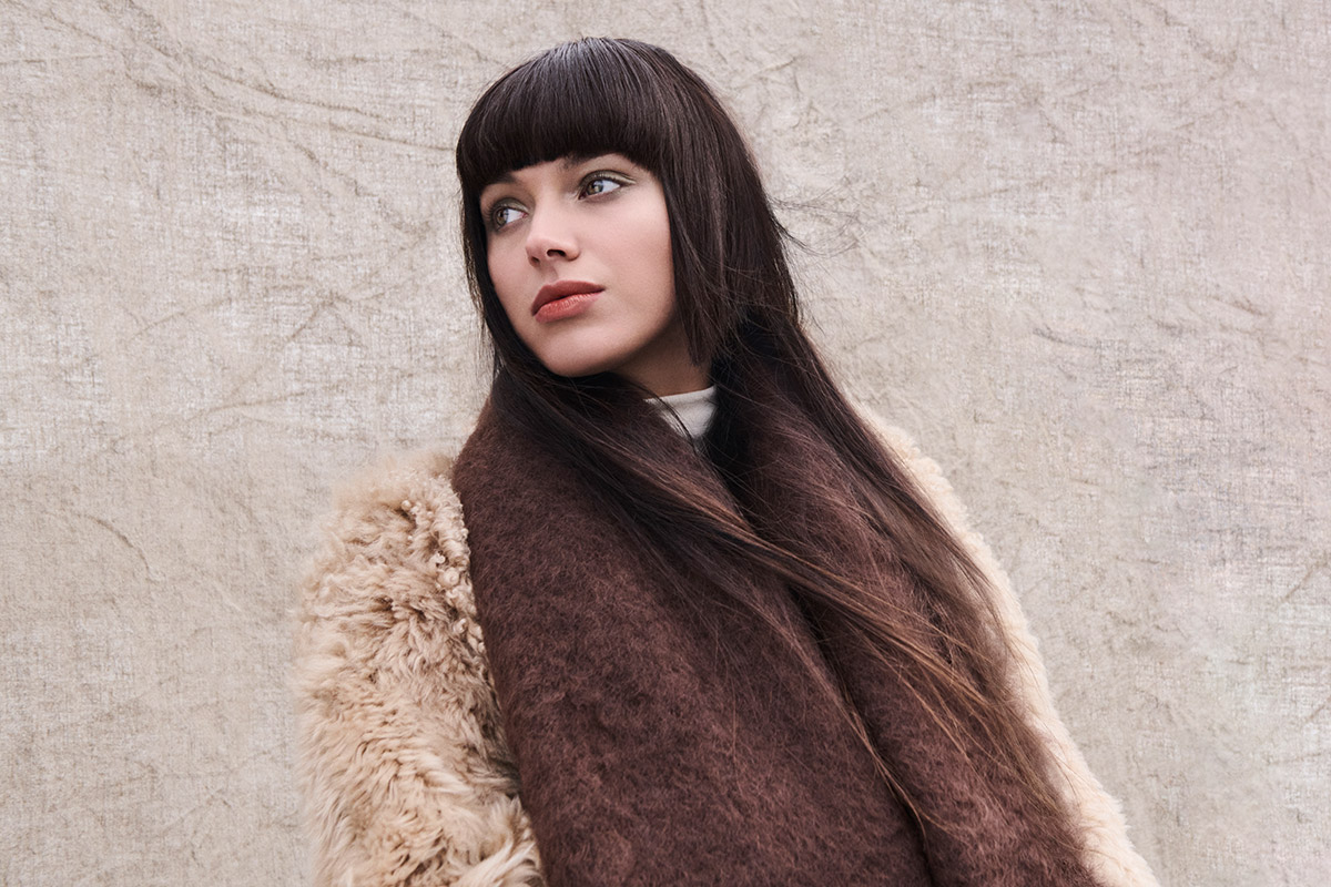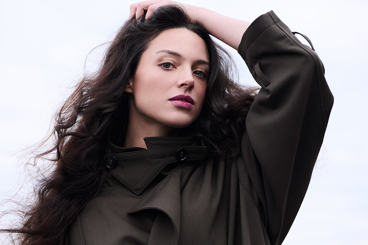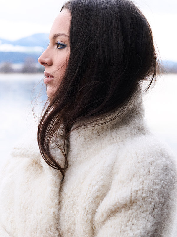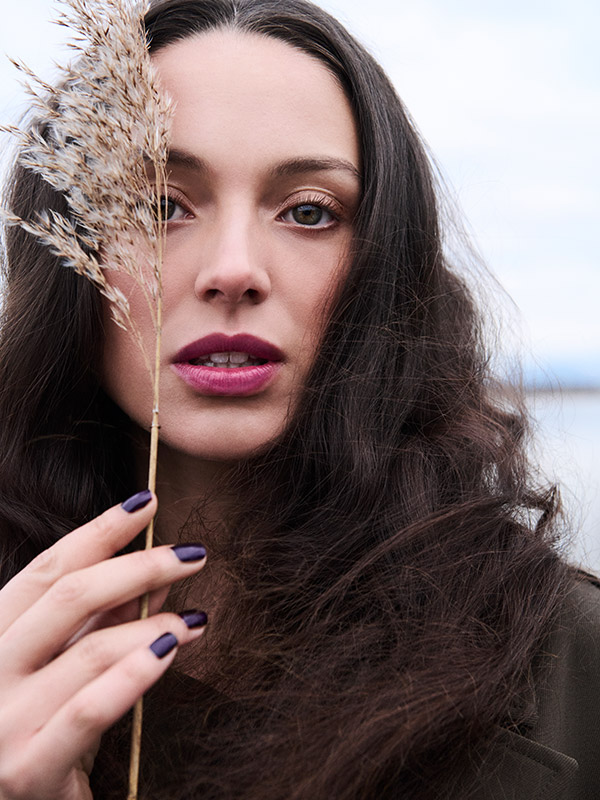 Les yeux sont délicatement accentués avec Automatic Pencil for Eyes K34 Cedar, Eyeshadow Pen Golden Nutmeg et Perfect Volume Mascara Brown, tandis qu‘une délicieuse nuance de baies mûres met la bouche au premier plan. Lush Lipstick Cassis prend soin de la peau délicate des lèvres pour un fini à la fois doux et velouté, mais également très expressif, subtilement contrasté par le violet profond et mystique du vernis Brilliant Nail Nightshade.