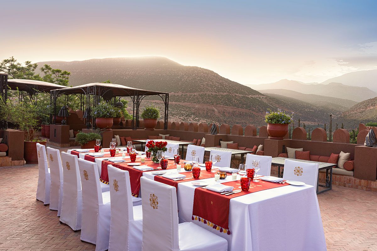 Côté restauration, la Kasbah Tamadot dispose de deux restaurants exceptionnels. Selon vos envies ou votre appétit, vous pouvez savourer la magistrale cuisine fusion du Chef exécutif Yassine Khalal qui mixe les influences locales et internationales, tout en profitant des vues imprenables sur les montagnes, au Restaurant Kanoun ou au tout nouveau Restaurant Asayss, inauguré à l’été 2024.