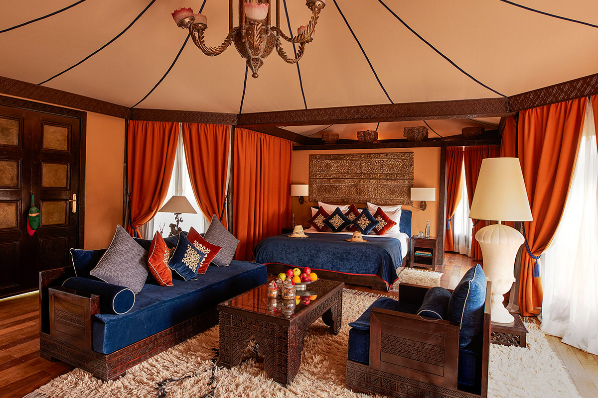 La Kasbah Tamadot propose une sélection impressionnante de 42 chambres, suites, tentes et riads luxueux, tous conçus avec soin pour vous plonger dans une escapade inoubliable au Maroc. Vous pouvez choisir entre les Superior Rooms magnifiquement aménagées, associant confort et élégance, et les spacieuses Deluxe Suites, dotées d’un coin salon séparé et de terrasses privées.