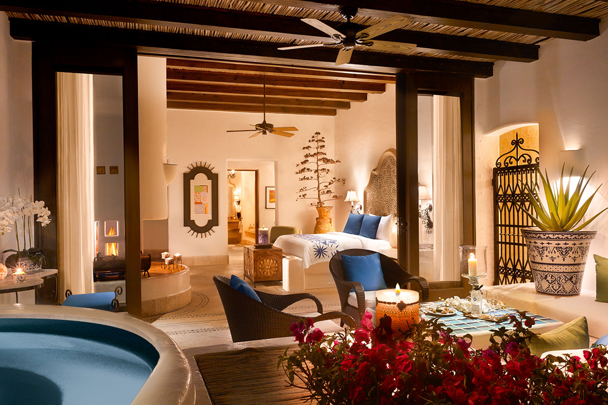 Las Ventanas al Paraiso se compose de 84 suites et villas d’exception. Chacune mêle avec goût des œuvres d’arts soigneusement sélectionnées, un mobilier original rendant hommage au savoir-faire des artisans locaux et des étoffes aux motifs chatoyants typiquement mexicains, le tout composant un ensemble de couleurs vives qui reflète l’atmosphère joyeuse et pleine de vie propre à Los Cabos. Chaque villa dispose d’une piscine privée à débordement et d’une vue imprenable sur la mer.