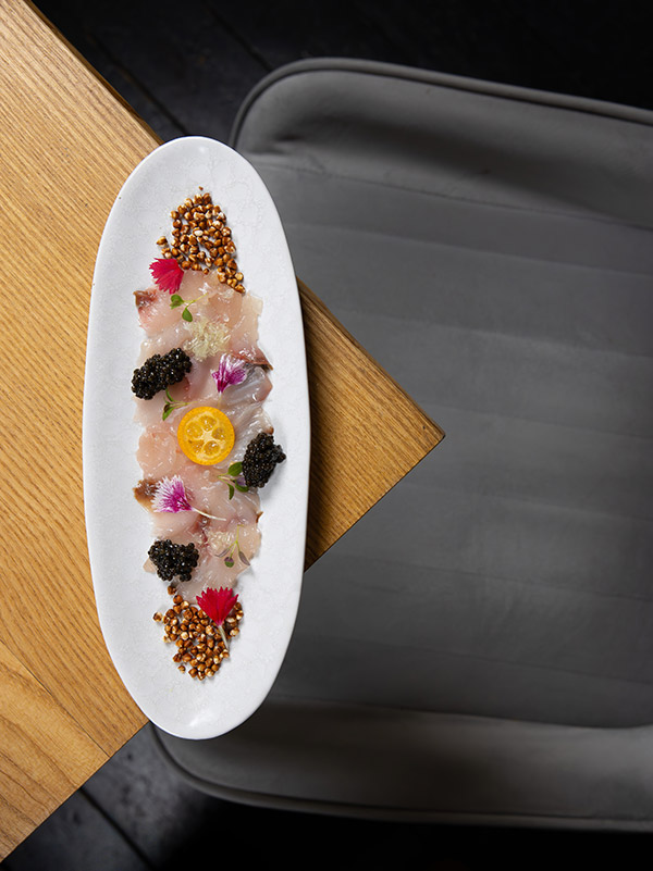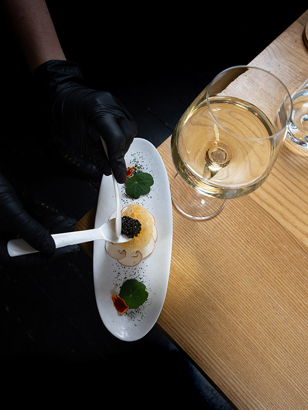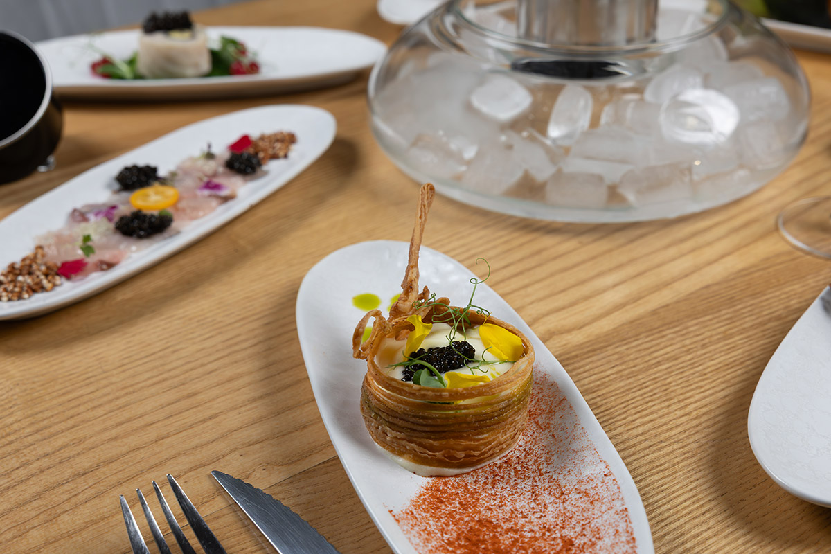 Autour d’elle, sept assiettes se succèdent, imaginées pour découvrir différentes textures, températures et accords. Un moment à partager, articulé autour d’un parcours culinaire qui met le caviar au centre des échanges.