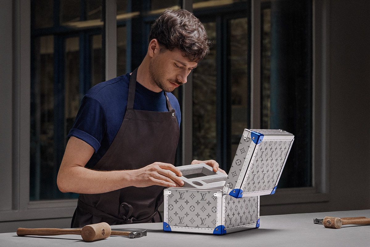 Enfin, deux malles d’exception ont été façonnées pour le projet LVDB-03. La première a été créée pour accueillir la pendule LVDB-03 Sympathique Louis Varius. La seconde destinée à la montre LVDB-03 GMT Louis Varius. Conçues et confectionnées par les maîtres artisans de la Maison à Asnières, ces malles sont spécialement fabriquées en titane polie. Les protèges coins en titane bleui par De Bethune ont été exclusivement développés pour ce projet, et les lozines en palladium ponctuent l’extérieur avec raffinement. À l’intérieur, ces malles dévoilent un aménagement organisé avec précision, en Alcantara® et en cuir gris.