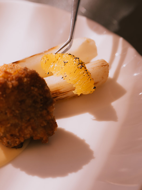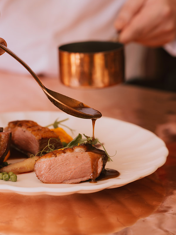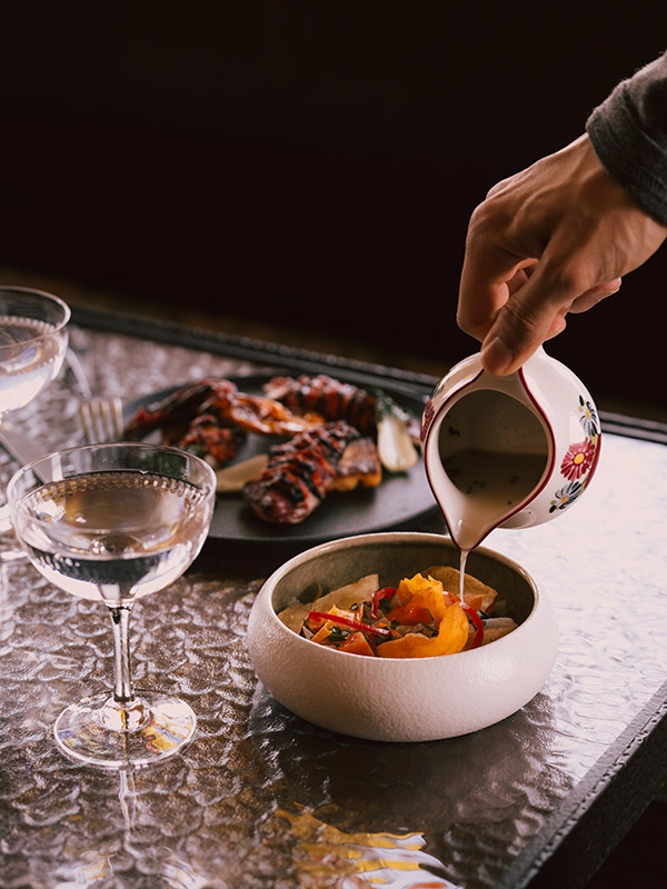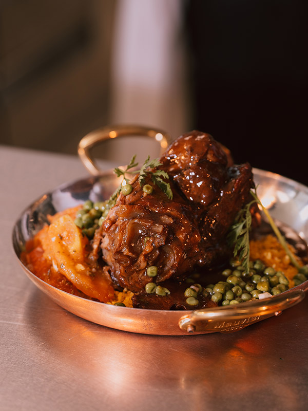 Ici, la cuisine est intuitive et voyageuse. La carte au déjeuner comme au dîner, est pensée comme un cabinet de curiosité qui privilégie le line familial et la convivialité. On y vient aussi pour partager, déguster deux ou trois assiettes au centre de la table, échanger expériences et saveurs. Au déjeuner, l’expérience se veut fluide et contemporaine avec une carte courte qui évolue au fil des saisons.