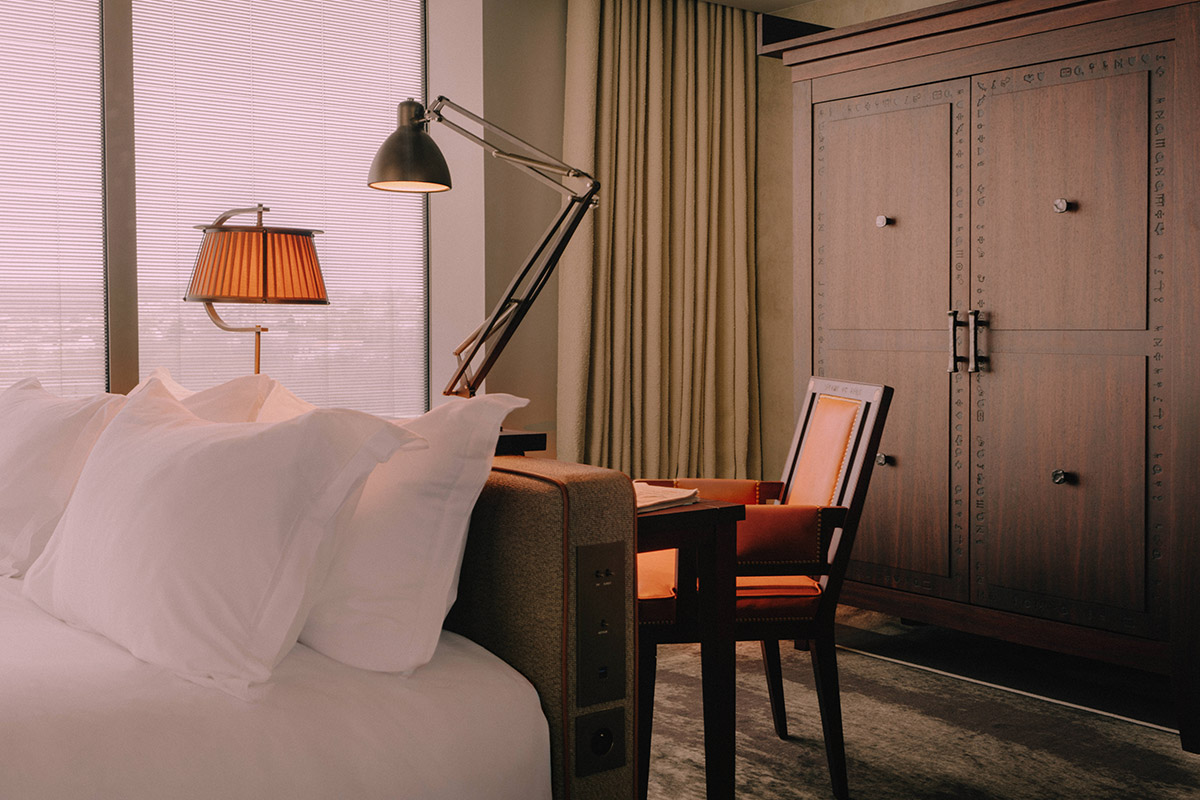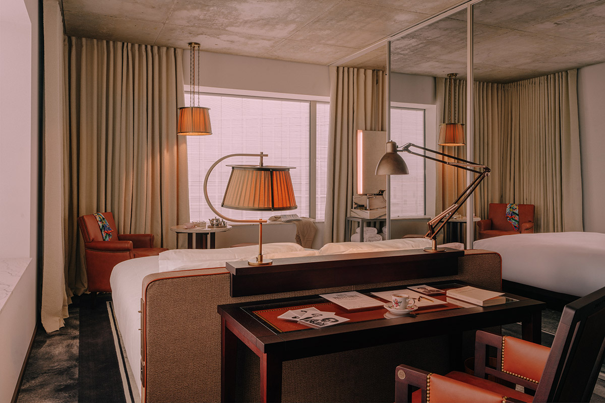 Du deuxième au huitième étage, Maison Heler dévoile ses chambres et suites, occupant sept niveaux entre ciel et terre. Élégante, fonctionnelle, chaque chambre et suite sont imprimées d’un luxe épuré, de mobilier rare et de matières nobles pour la plupart sourcées dans la région. De grands panneaux de marbre multicolores et miroirs coulissants habillent murs et salles de bains.