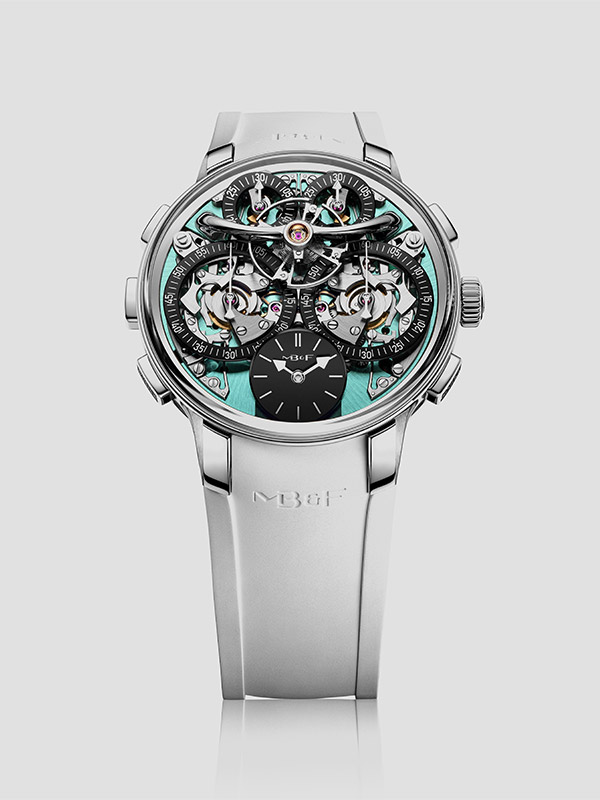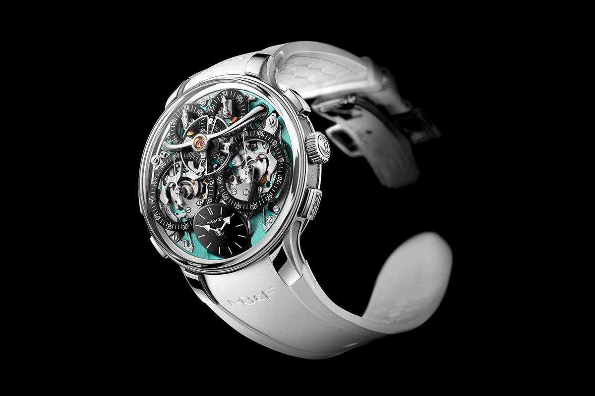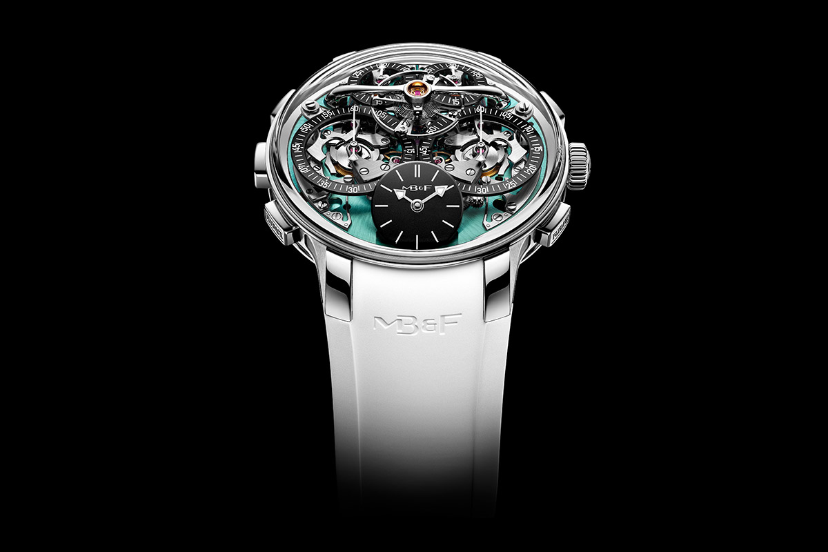 MB&F vient de dévoiler sa nouvelle pépite, la LM Sequential Flyback EVO, avec boîtier en titane grade 5 et platine-cadran bleu-vert. Dotée de chronographes flyback, elle hérite également de l’affichage incliné qui améliore la lisibilité de l’heure.
