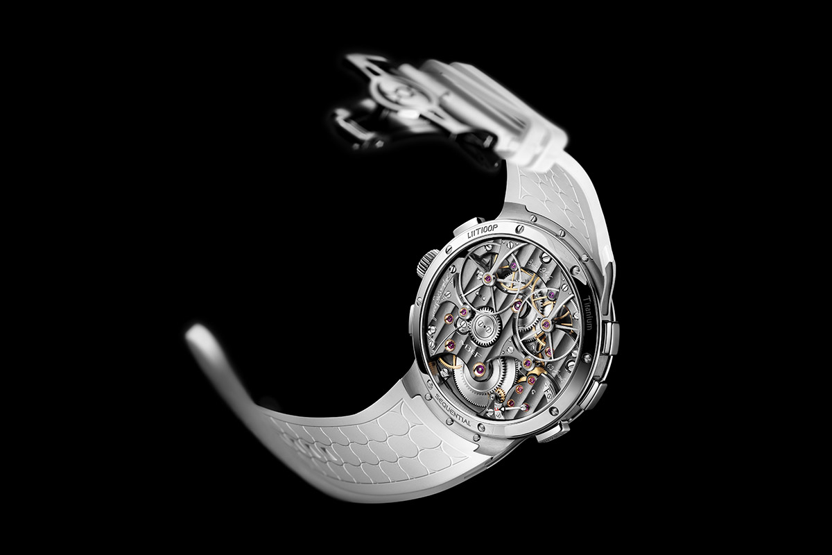 Le concept de la LM Sequential est absolument unique. Son mouvement comprend deux chronographes indépendants, reliés à un échappement et un oscillateur communs. Connaissant les pertes d’énergie engendrées par un chronographe conventionnel, imaginez ce qui pourrait se produire avec deux chronographes dans un seul mouvement ! Les pertes seraient doublées, ce qui se traduirait par un affaiblissement inacceptable de la performance.