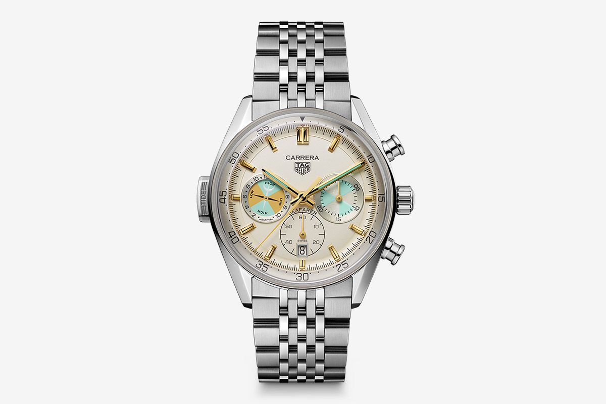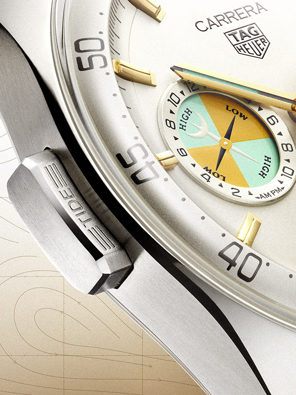 Aujourd’hui, 77 ans plus tard, l’indicateur des marée fait son retour sur la nouvelle TAG Heuer Carrera Chronograph Seafarer, qui associe le design glassbox à certains des codes originaux.