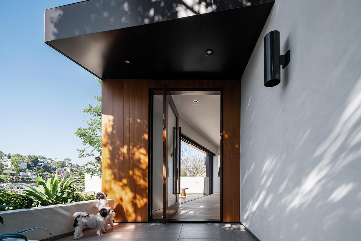 Slot House est une maison individuelle de 223 m2 perchée sur un terrain offrant une vue imprenable sur les collines et le lac Silver Lake. Ce bâtiment posé à flanc de colline transforme une topographie complexe en un espace de vie dynamique.