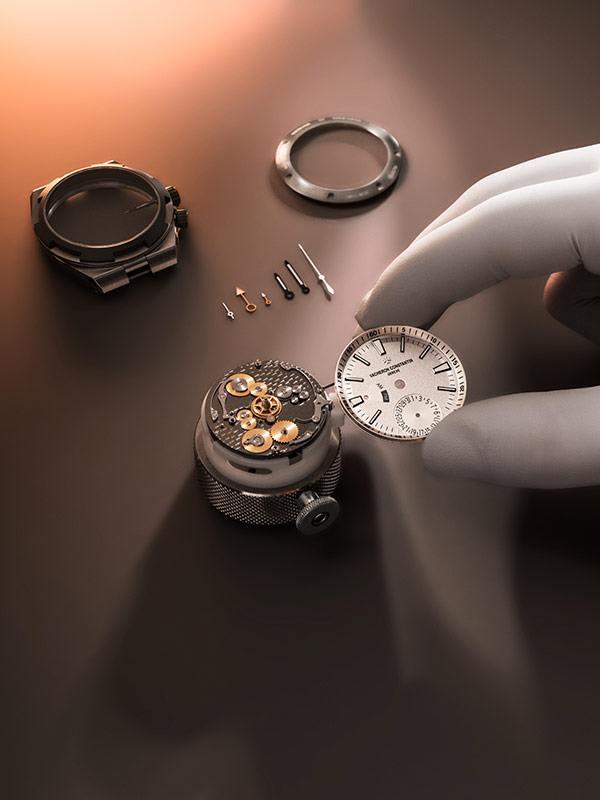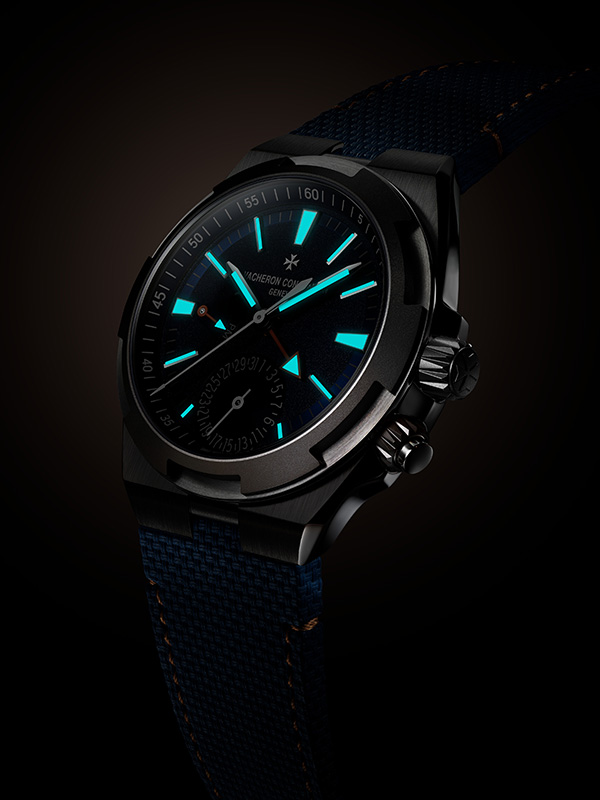 L’esthétique caractéristique du titane et ses propriétés sont mises en valeur par une finition gris anthracite mate appliquée sur la lunette, la couronne et la bague du poussoir. Cette terminaison crée un subtil contraste sur les six pans caractéristiques de la lunette Overseas qui évoquent une croix de Malte, emblème de la Maison depuis 1880.