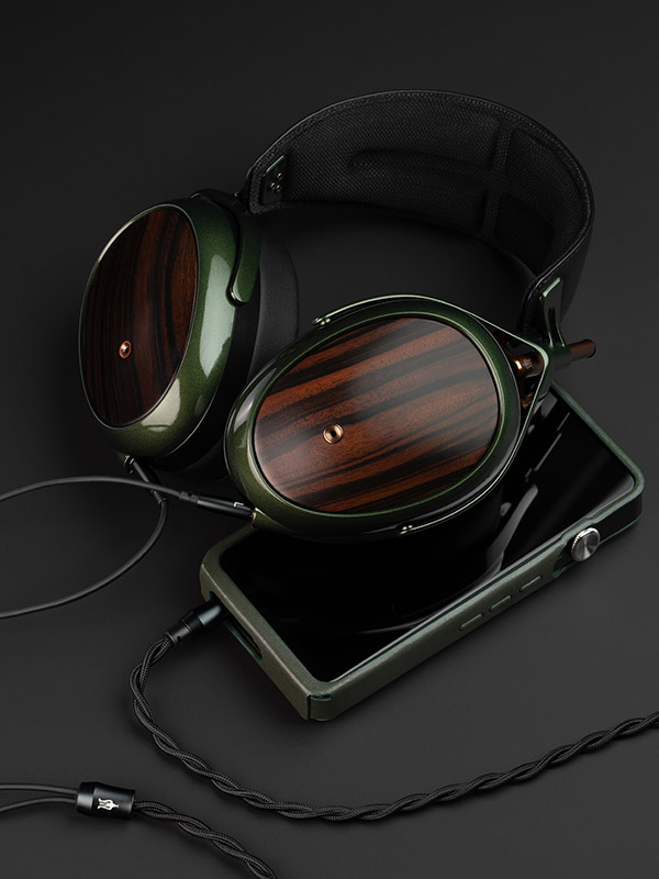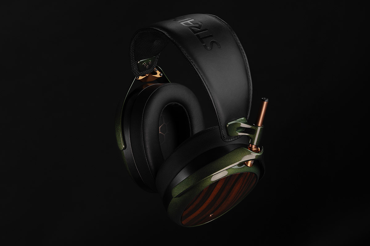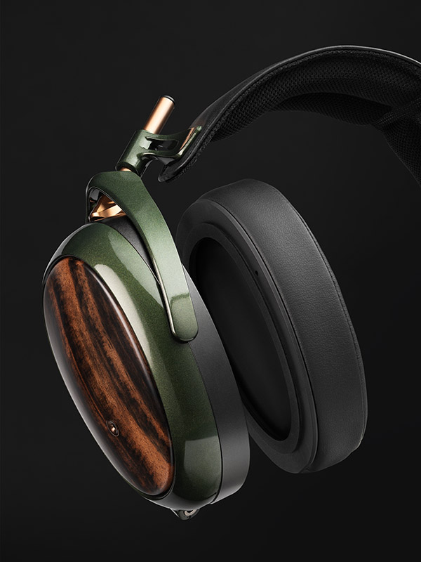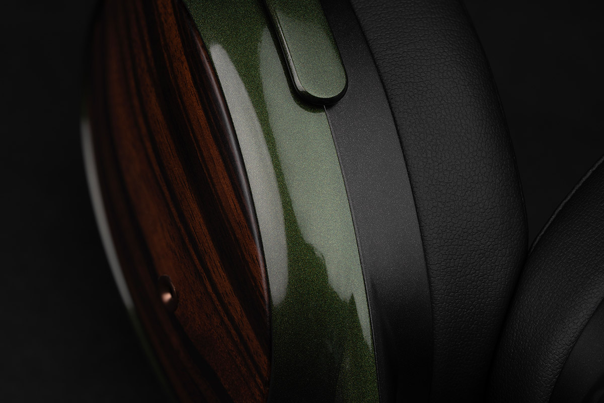 Outre ses coussinets magnétiques, ses oreillettes en ébène de Macassar et son arceau rembourré, le Strada se caractérise par sa structure en magnésium peinte à la main d’un vert profond aux subtils reflets métalliques. Quatre couches soigneusement appliquées créent une finition qui exprime à la fois un design moderne et un savoir-faire artisanal.