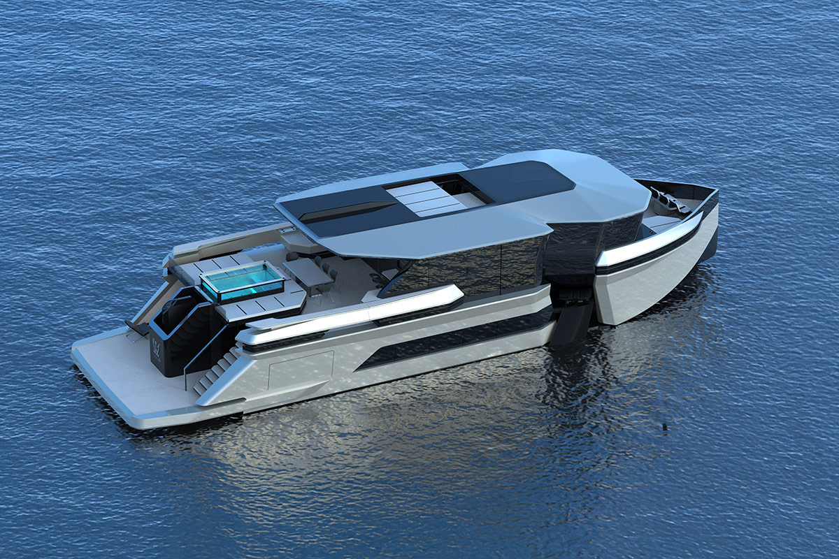 Offrant plus de 185 m2 de surface habitable, Ghost offre des espaces de vie généreux, rarement vus sur un yacht de cette taille. Son espace intérieur peut recevoir trois à cinq cabines, dont un beach club privé à l’arrière avec accès direct à la mer. Il faut dire que sa largeur de 8 mètres permet de libérer un volume intérieur que l’on retrouve normalement sur des yachts beaucoup plus grands.