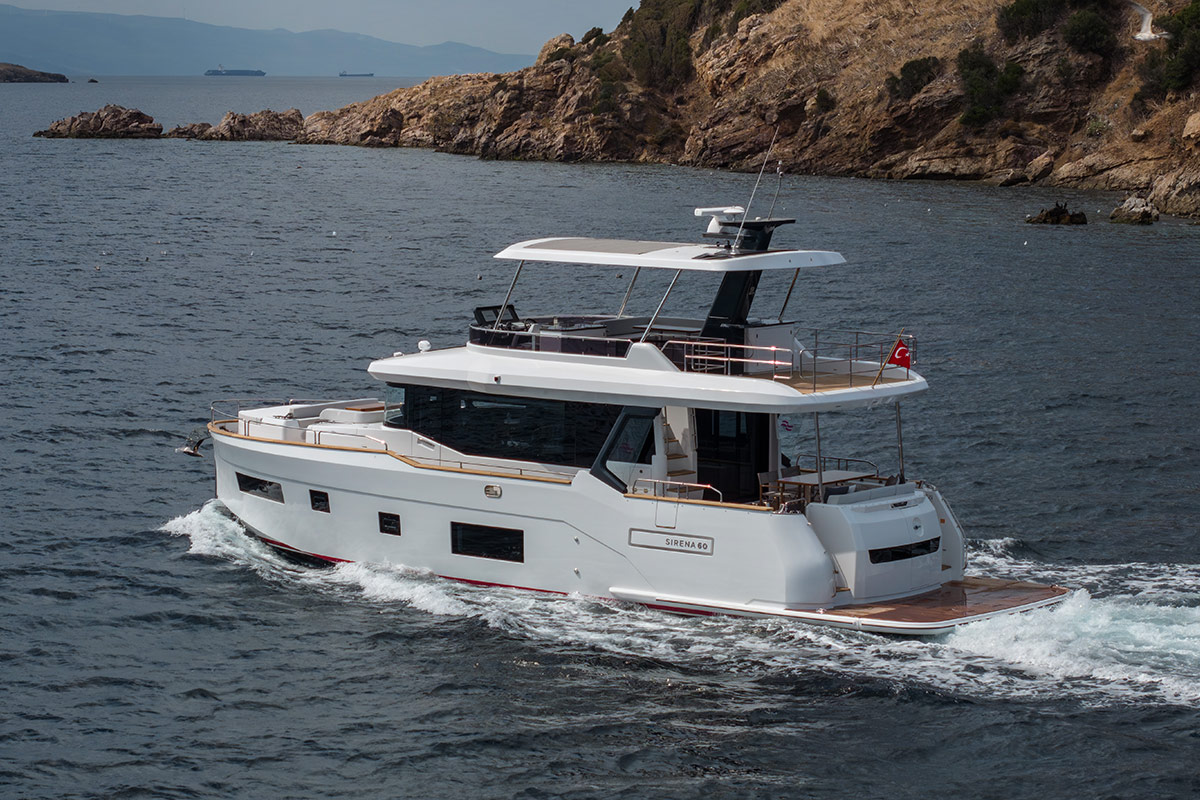 Le nouveau Sirena 60 a fait ses débuts au Yachting Festival de Cannes 2025. Ce modèle offre des espaces extérieurs et un volume intérieur nettement plus grands que son prédécesseur, ainsi que de nombreuses options de personnalisation.