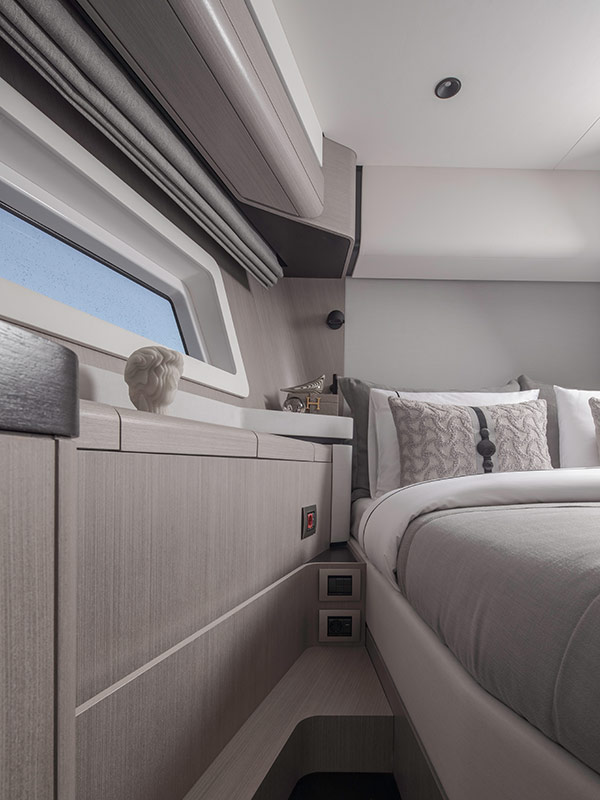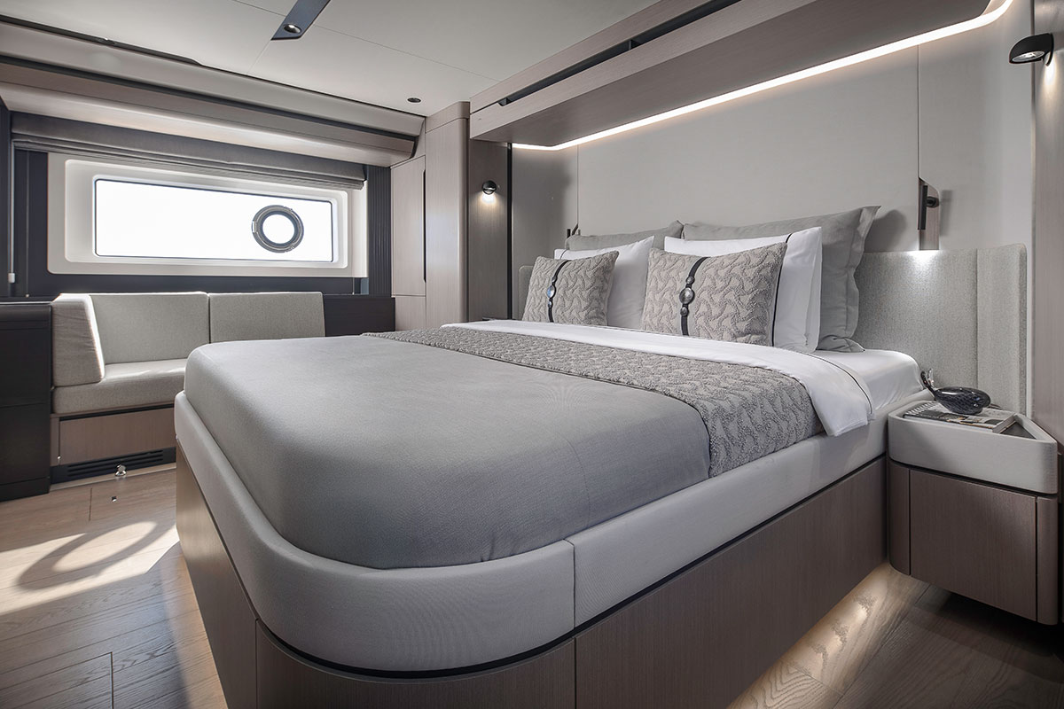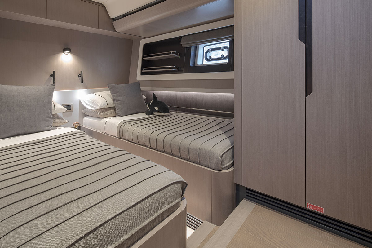 Offrant de nombreuses options de personnalisation, la configuration de base du Sirena 60 comprend trois grandes cabines, dont une superbe cabine propriétaire pleine largeur au milieu du navire et une spacieuse cabine VIP double à l’avant. La troisième cabine offre des possibilités d’utilisation plus flexibles. Grâce à un système de lit coulissant transformable, elle peut passer d’une spacieuse cabine double en deux lits simples.