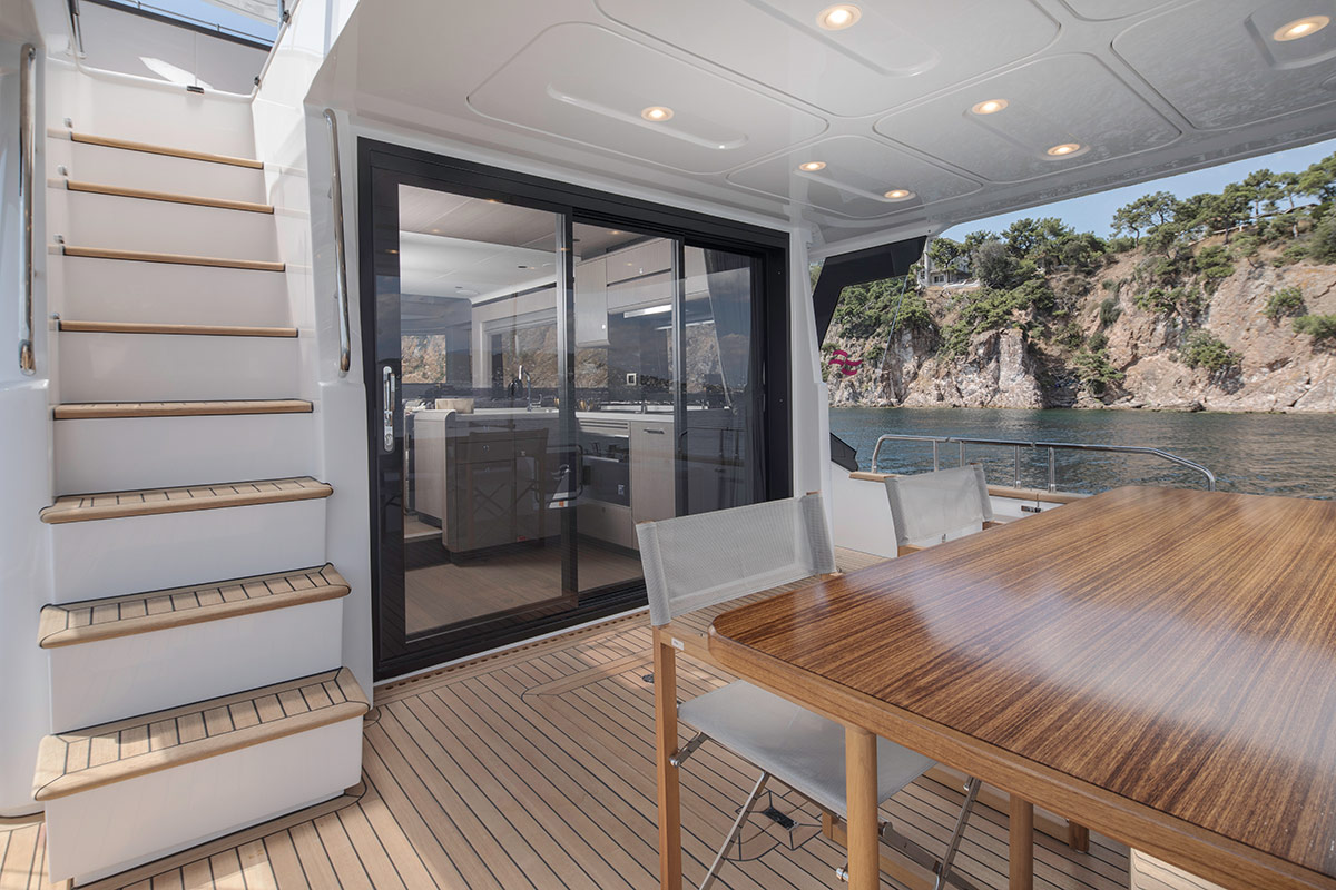 Enfin, le Sirena 60 dispose d’une plateforme de bain allongée et d’un généreux espace de rangement pour faciliter l’accès à l’annexe et aux jouets nautiques. Étudié pour transporter tout type d’équipement, des jet-skis aux paddles, il est idéal pour ceux qui aiment s’amuser sur l’eau.