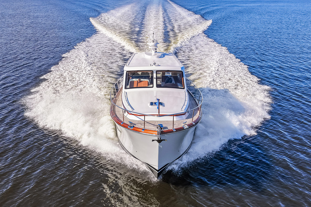 Avec ses 16,85 mètres et sa position centrale dans la gamme Custom de Vicem, qui va de 4 à 24 mètres, le Classic 55 est disponible en version berline ou flybridge. Ce modèle illustre à merveille l’alliance du style classique et du confort moderne, signature de Vicem.