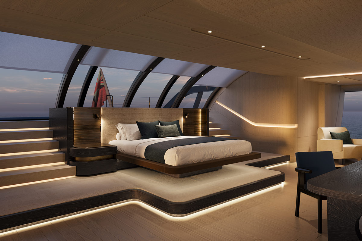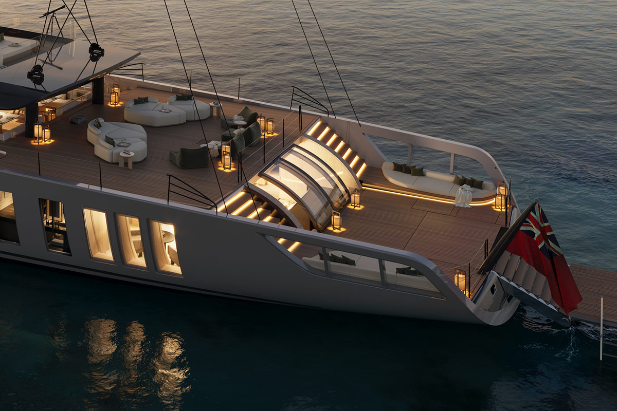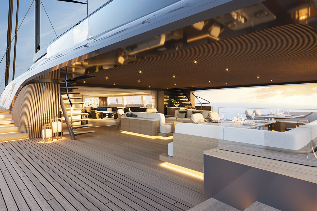La conception et la majeure partie de l’ingénierie de cet extraordinaire yacht sont déjà finalisées, et sa livraison est prévue pour le printemps 2030. Sky est conçue pour la croisière autour du monde et offre des performances exceptionnelles à la voile. Sa longue ligne de flottaison, sa quille relevable, sa construction entièrement en aluminium avec une répartition des masses optimisée, combinées à un puissant gréement Rondal en carbone, font de lui un véritable superyacht XXL.