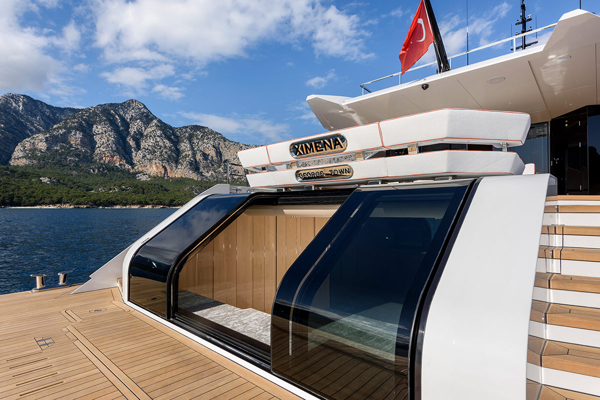 Ximena illustre également les avantages pratiques d’une construction entièrement personnalisée. Son garage central peut accueillir une annexe de 6,5 mètres, offrant une grande facilité de manœuvre à l’équipage, tandis que les systèmes et aménagements à bord sont adaptés précisément aux besoins opérationnels du propriétaire. Huit couchages sont prévus pour l’équipage, garantissant le niveau de service attendu d’un yacht de cette catégorie.