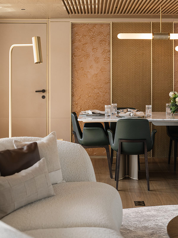 « Ce projet visait à créer un espace de vie ouvert et convivial », explique Artur Sharf, cofondateur de Yodezeen. « Les propriétaires souhaitaient un style moderne, mais chaleureux, un lieu où il y a de la texture et du caractère. L’alliance de courbes douces, de matériaux naturels et de finitions soignées nous a permis d’atteindre cet équilibre. »